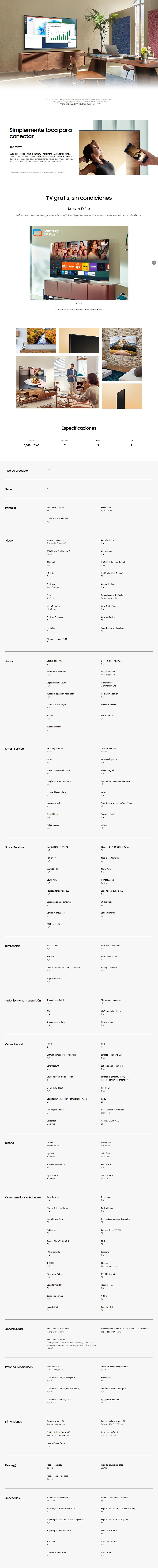 Smart TV Samsung AU7000 / 65″ / UHD 4K 3840 x 2160px / Clase Diagonal 7 / Series TV / LCD Con Retroiluminación LED / X3 Hdmi / Bluetooth, WIFI / USB / Negro