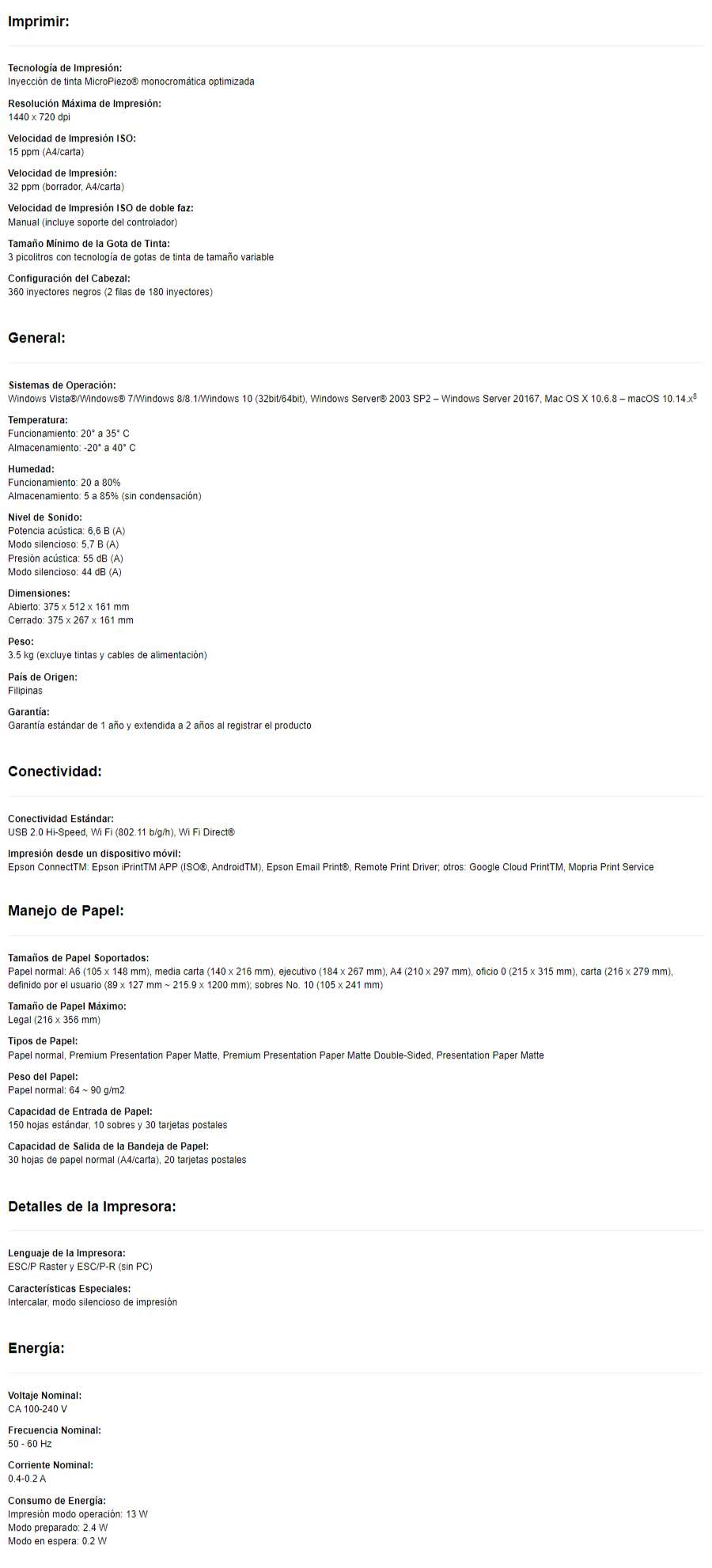 Sé el primero en valorar “Impresora EPSON M1120 / Inyección De Tinta / Blanco Y Negro / Incluye 2 Botellas De Tinta / Wifi / Blanco Con Gris”