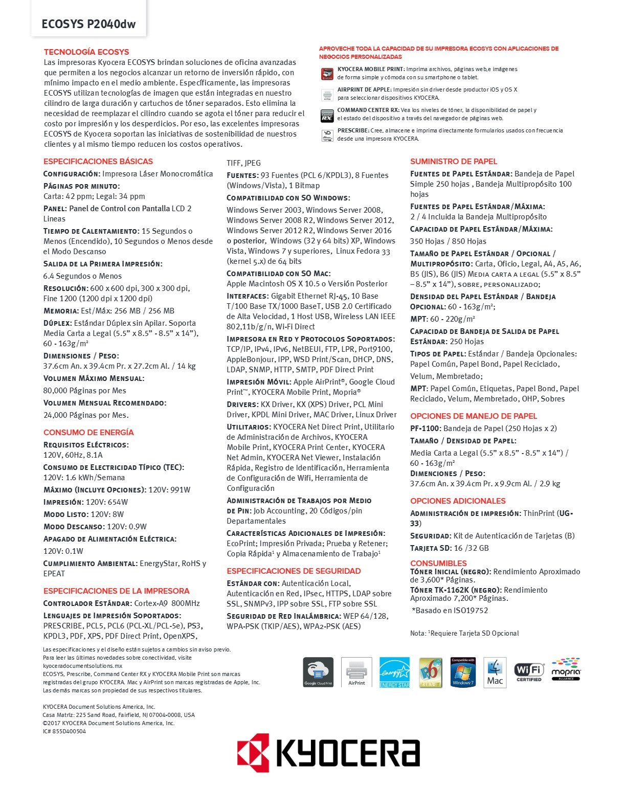 Impresora Láser KYOCERA Ecosys P2040dw