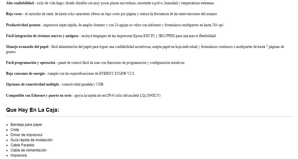 Sé el primero en valorar “Impresora Matriz De Punto EPSON LQ-2090II / 24 Agujas / Alto Rendimiento / Hasta 584 CPS / Conexión Bidireccional, Ethernet, USB / Lenguajes ESC/P2, IBM PPDS”