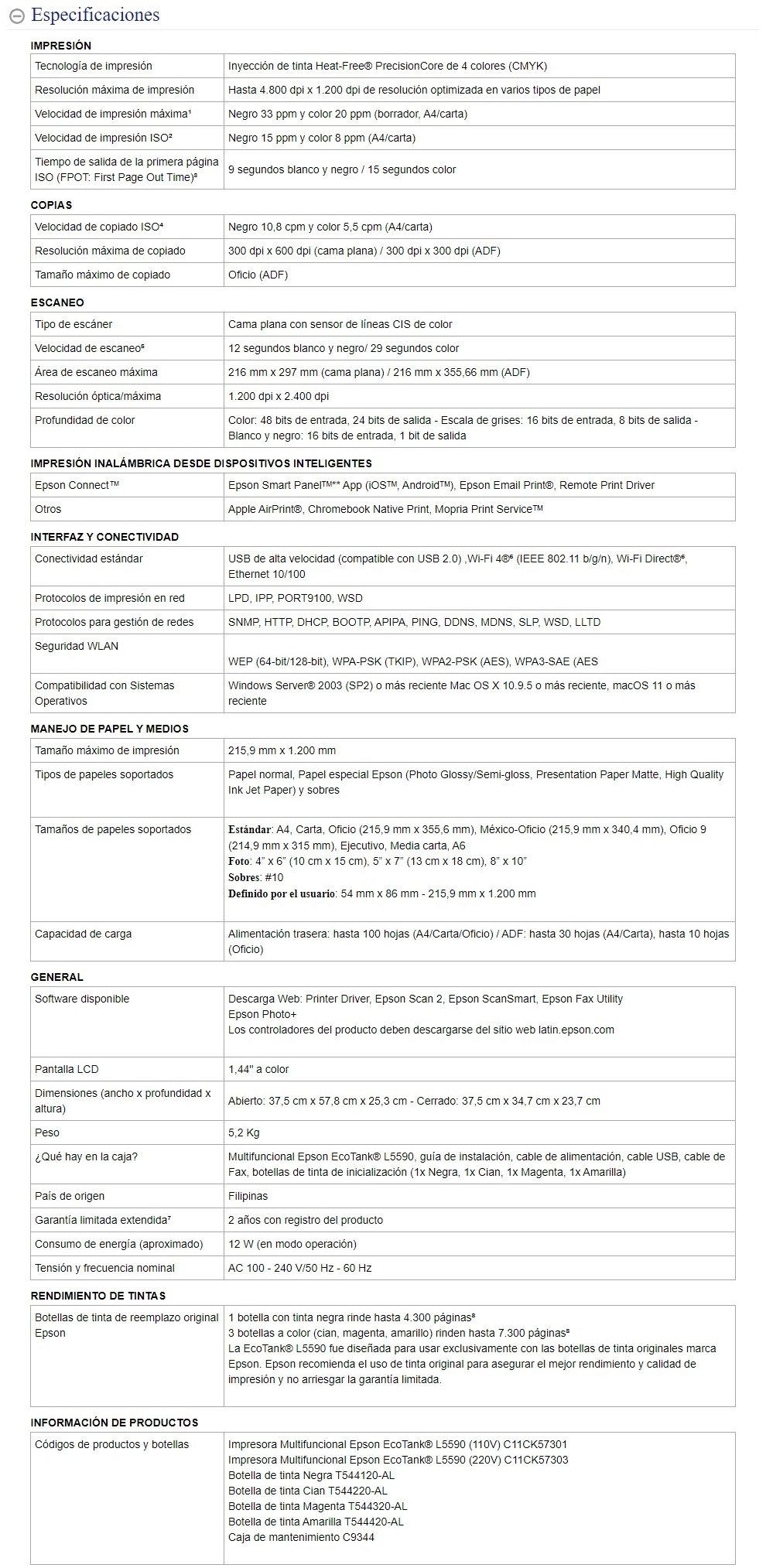 Sé el primero en valorar “Impresora Multifuncional EPSON ECOTANK L5590 / Inyección De Tinta / WIFI, USB, Ethernet / Hasta 4,800 X 1,200 Dpi / Pantalla LCD 1.44″ / Hogar, Oficina / Negro”