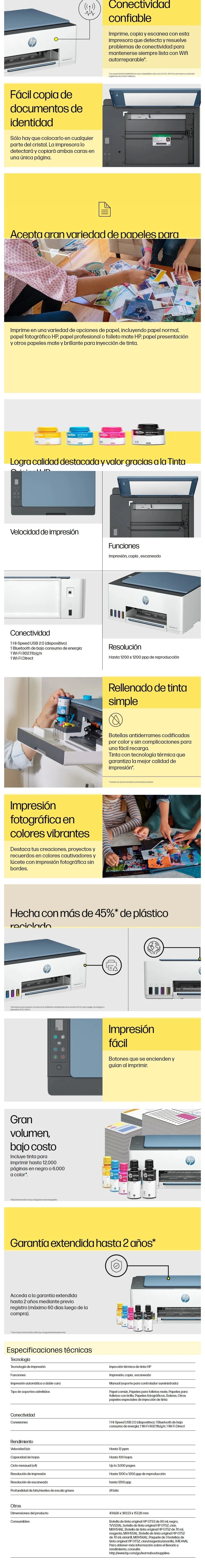 Impresora Multifuncional HP SMART TANK 585 / Tinta Continua / Wifi, Bluetooth / Hasta 4,800×1,200 Dpi / Hogar, Oficina / Blanco