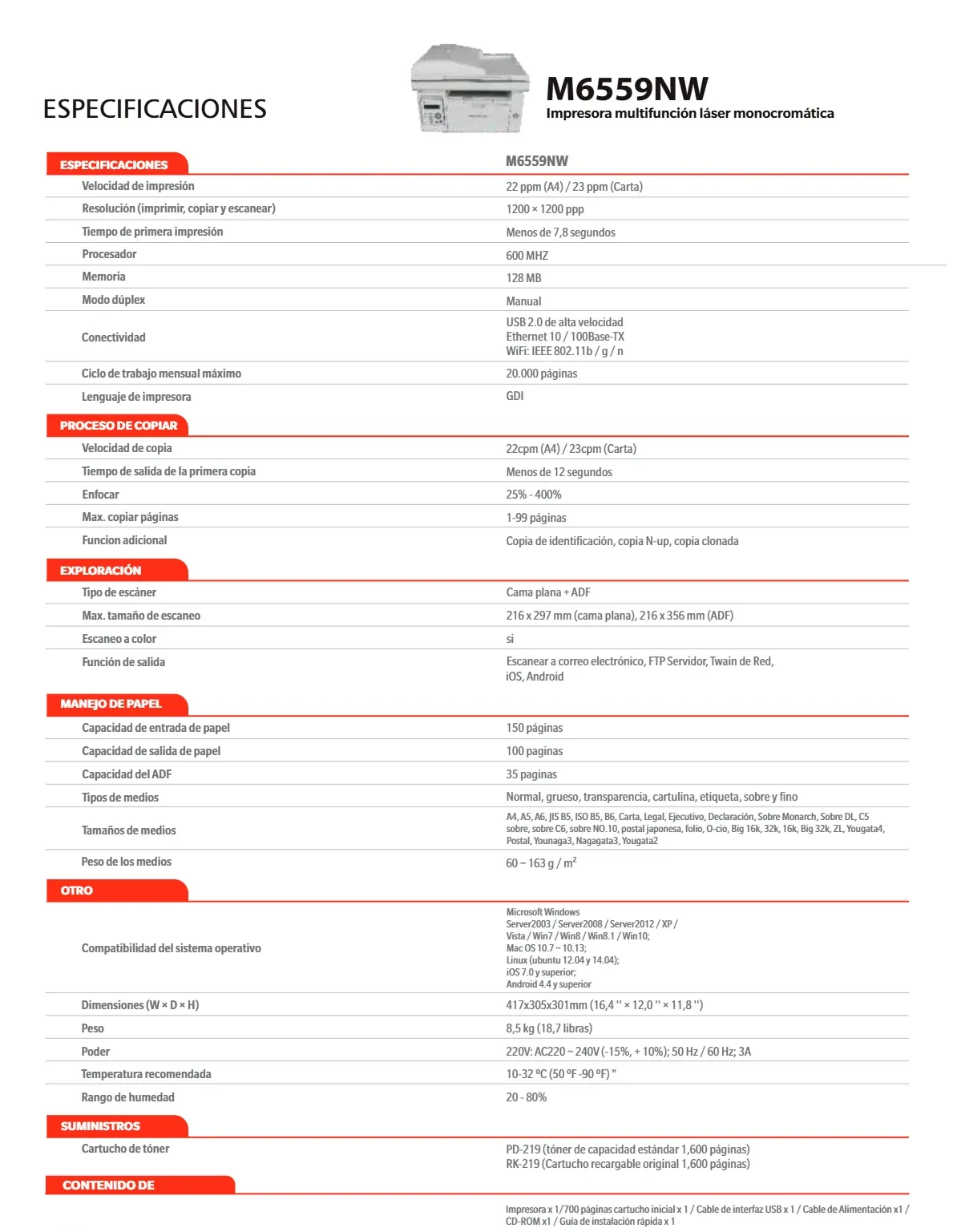 • Velocidad de impresión: 23 ppm