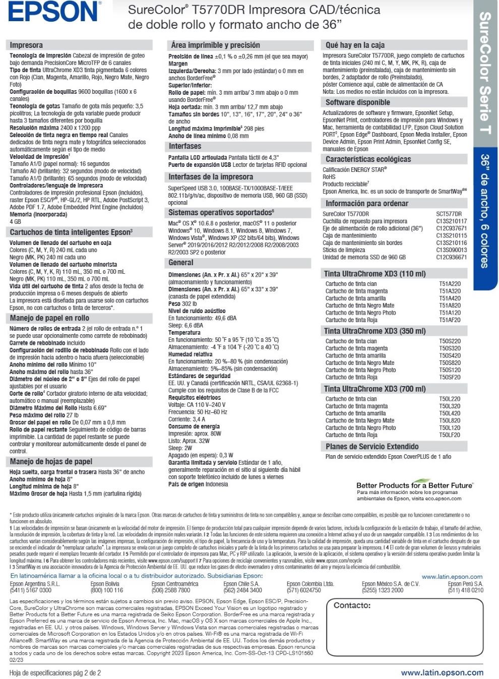 Impresora SureColor EPSON T5770DR / Cabezal de Impresión / Formato Ancho de 36” / 2400 x 1200 dpi / USB 3.0, Ethernet, Wifi / Pantalla LCD 4.3″ / Blanco-Negro
