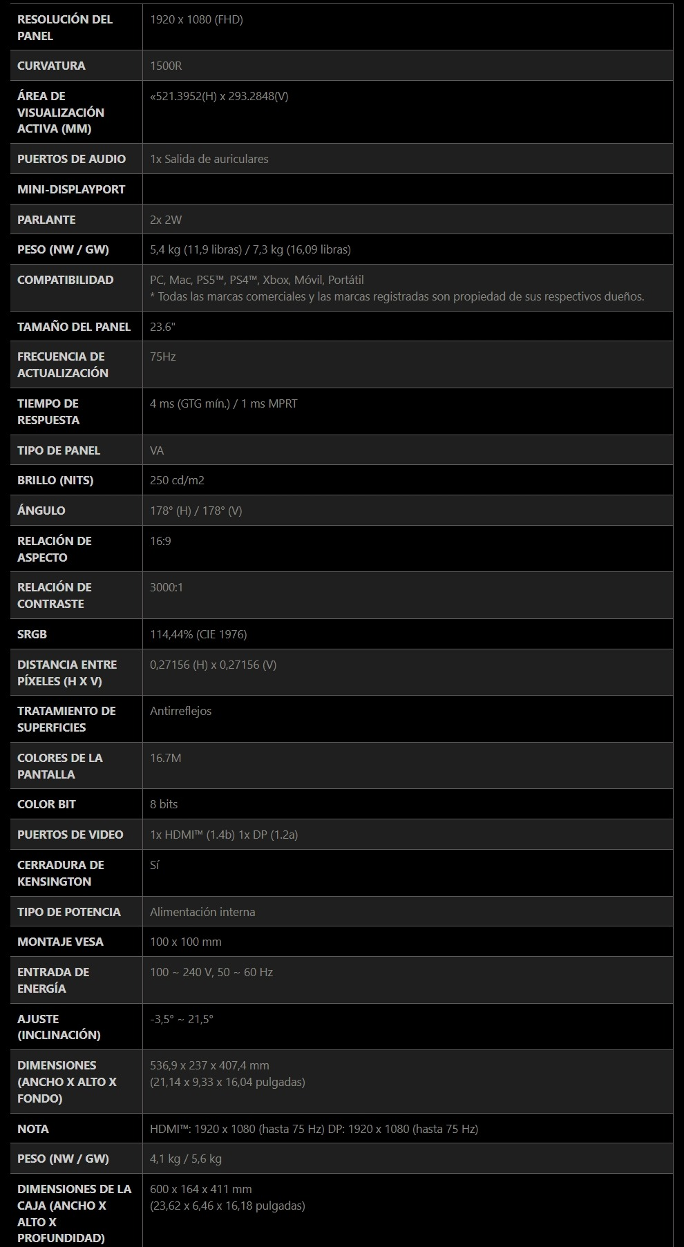 • La tasa de refresco de 75 Hz proporciona una mejor experiencia de visualización