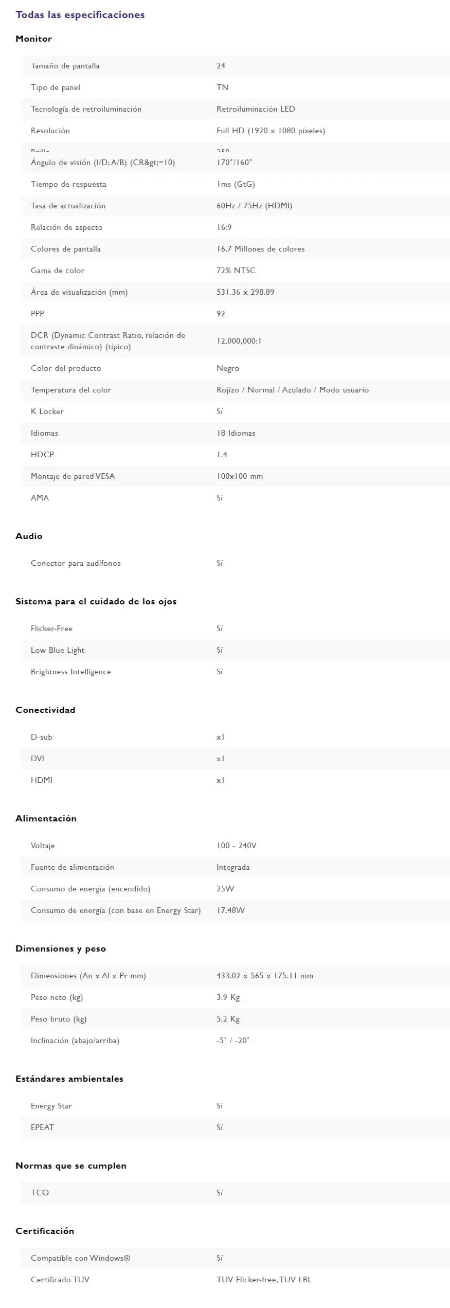 Monitor GAMER Benq Gl2480 / Tn 24” / 75HZ / Full Hd 1920 X 1080 / 1MS / Hdmi, D-Sub (Incluye), Dvi / Negro