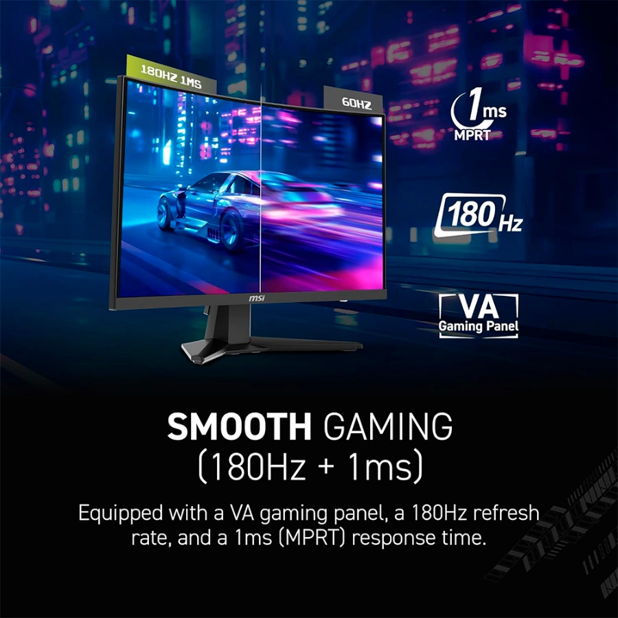 Monitor Gamer Curvo MSI MAG 242C LCD 24″– 1920 x 1080 Full HD, HDR READY, Adaptive Sync, Panel VA, 180Hz, Hdmi, Dp, 1MS, Vesa, Sin Bordes, Negro