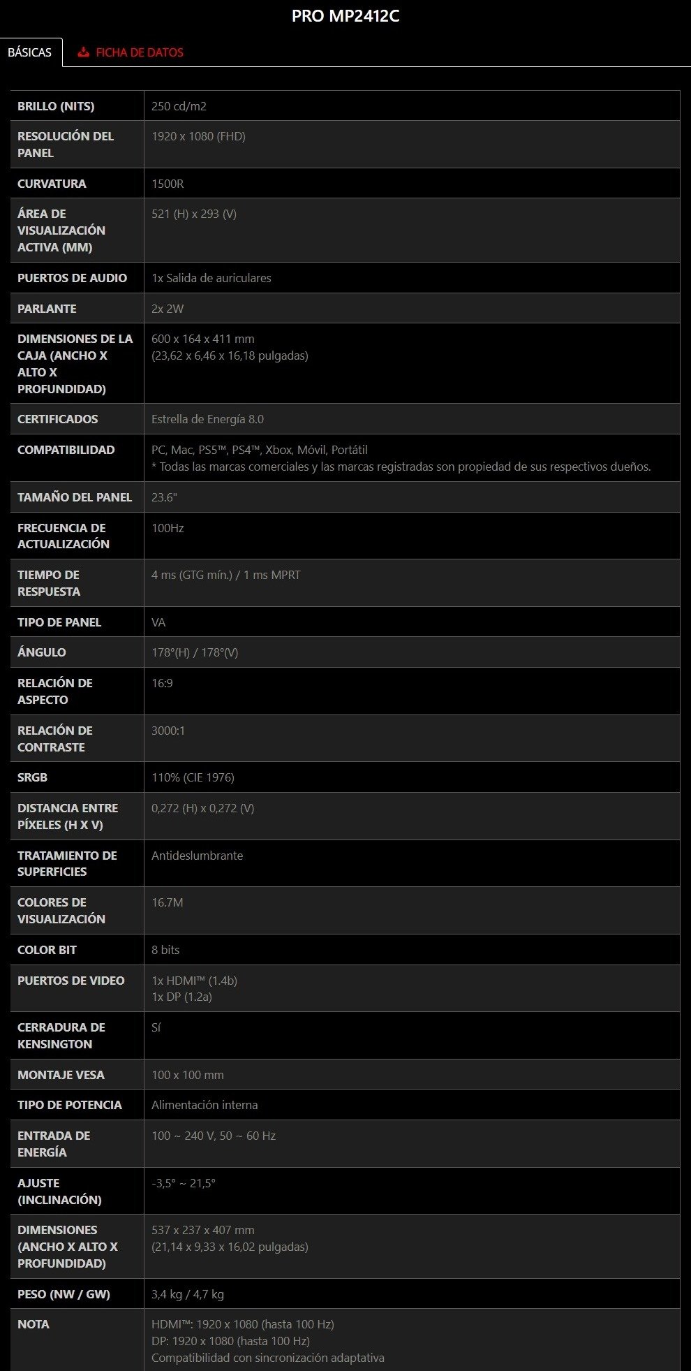 Sé el primero en valorar “Monitor Gamer MSI PRO MP2412C / 23.6″ / 1920X1080 / 100Hz / Panel VA / Curvatura 1500R / 4 MS / HDMI, DP, 3.5 MM / Montaje VESA/ Antideslumbrante / Negro”