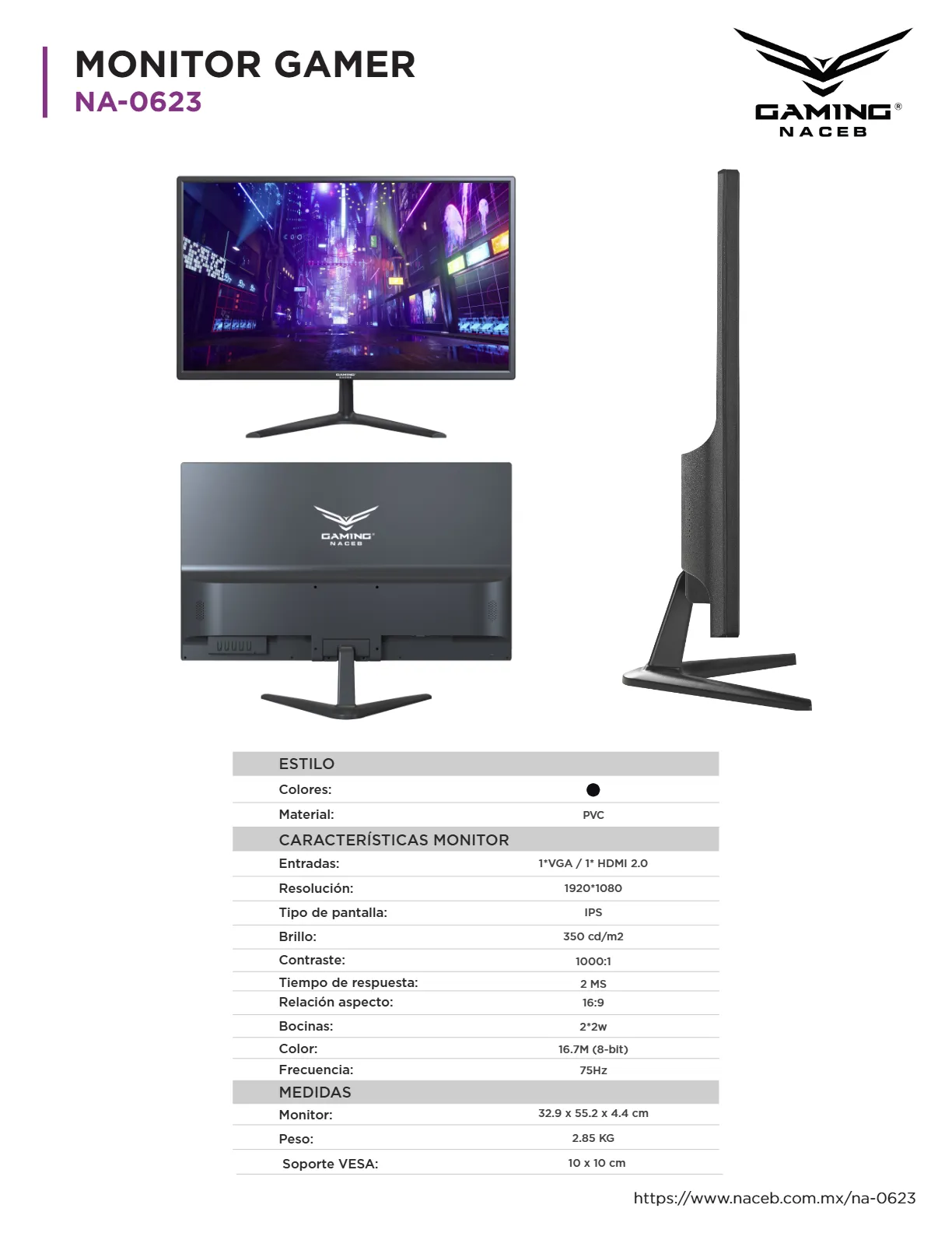 Monitor Gamer NACEB / 1920 X 1080 FULL HD / 75 HZ / HDMI, VGA / Bocinas / 24″ / Panel IPS / FREESYNC / 2MS / Negro /