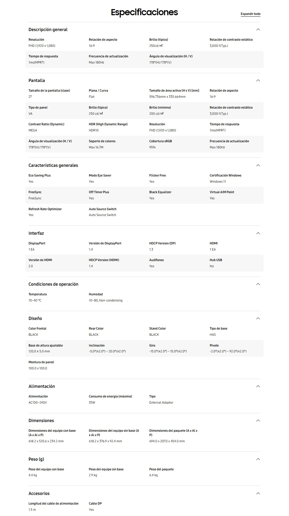 Diagonal de la pantalla: 68.6 cm (27″)