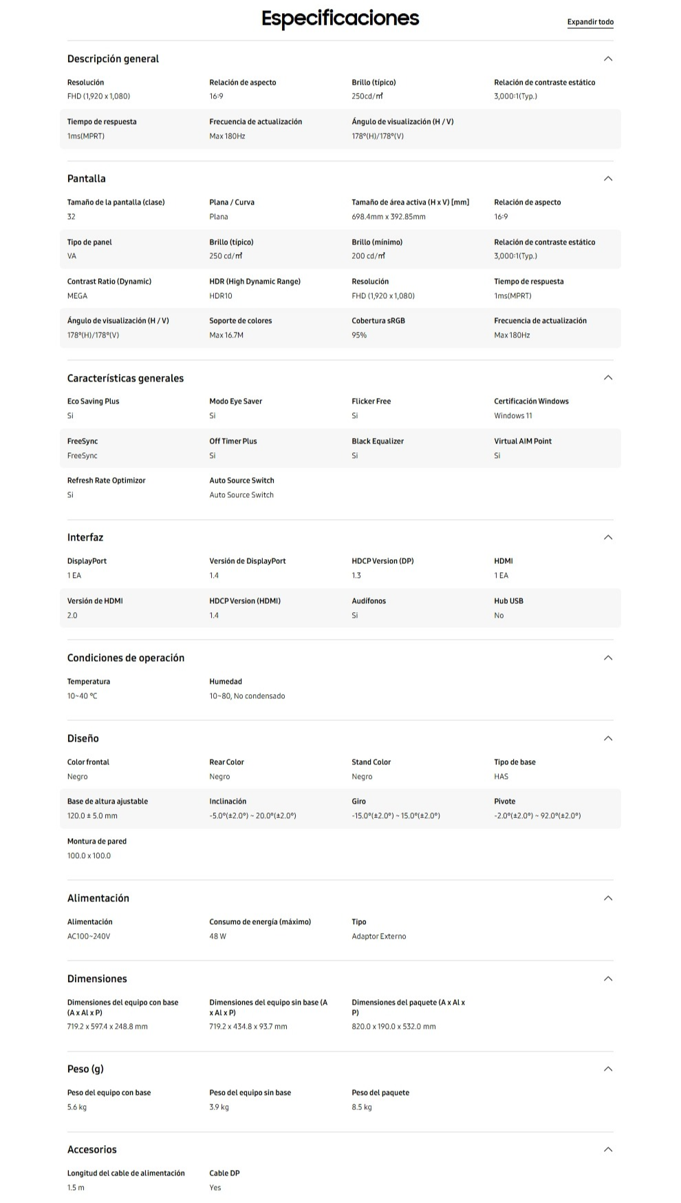 Diagonal de la Pantalla: 81.3 cm (32″)