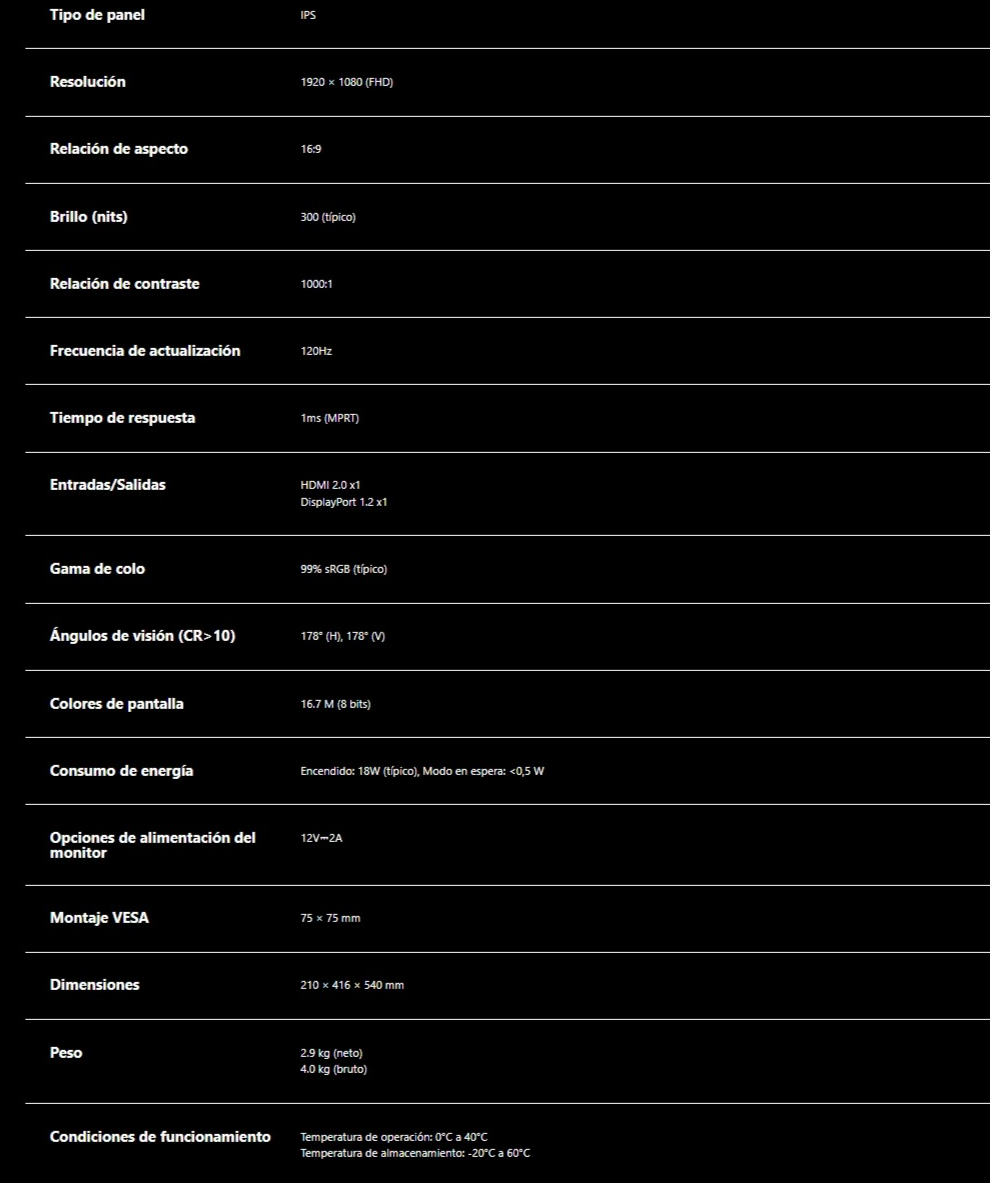 Monitor Gamer XPG RIFT R24F2 LED – 23.8″, 1920 x 1080 Full HD, Panel IPS, 120Hz, Hdmi, Dp, 1MS, Adaptive Sync, Vesa, Negro
