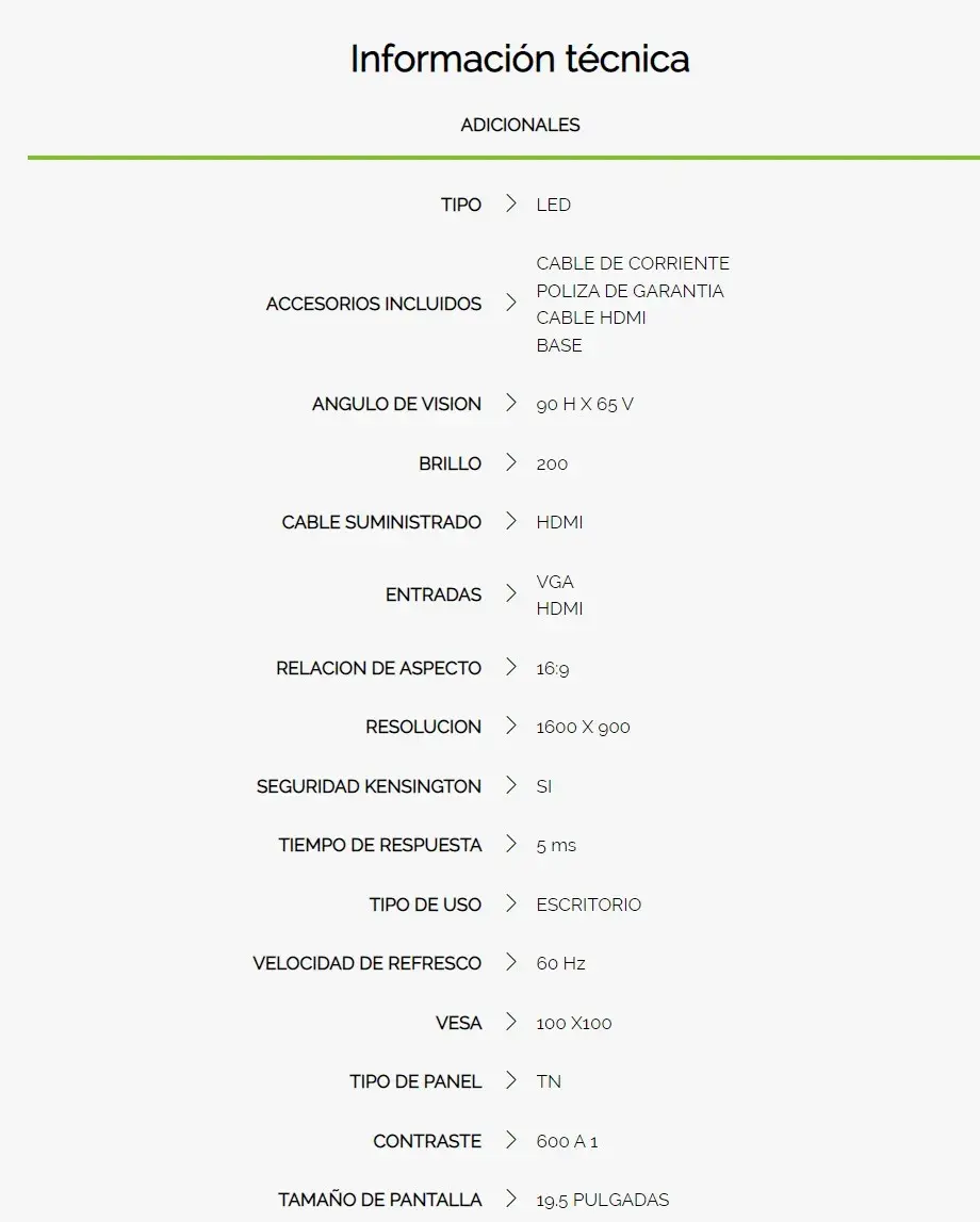 Monitor GHIA / 19.5” / TN / RESOLUCION 1600 X 900 / VGA, HDMI / 60HZ / 5MS / Negro