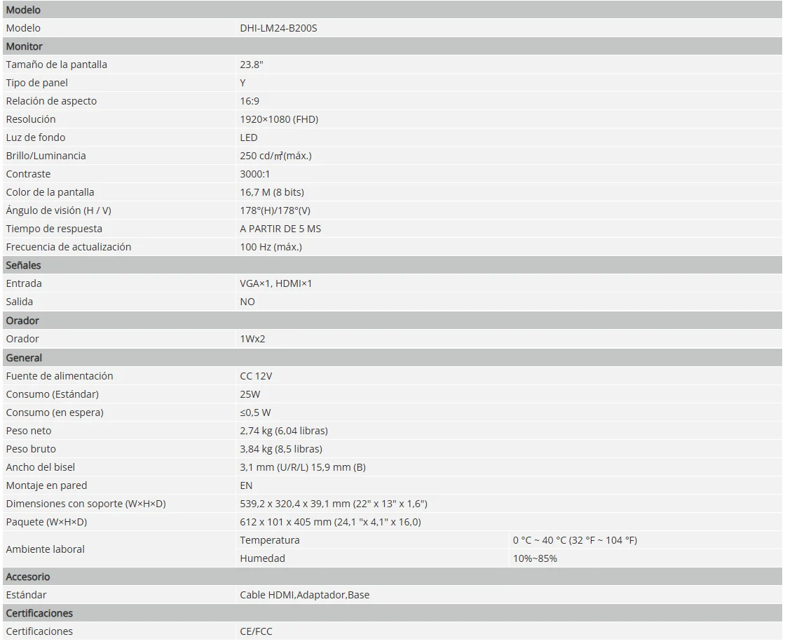 Monitor LED DAHUA DHI-LM24-B200S / 23.8″ / 1920X1080P Full HD / 75 HZ / Panel VA / 5 MS / Hdmi, Vga / Bocinas 1W x2 / Low Blue Light / Marco Ultradelgado / Negro / DHI-LM24-B200S