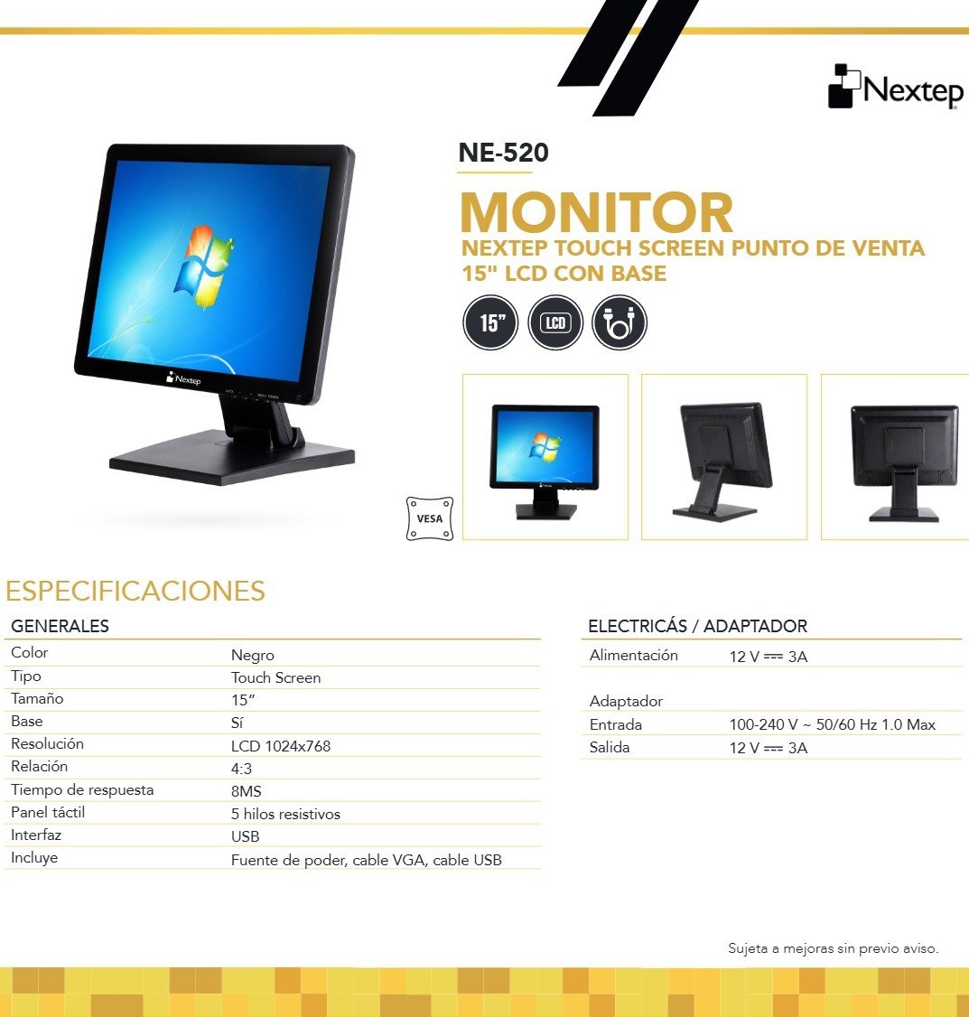 Sé el primero en valorar “Monitor NEXTEP LCD Touchscreen / 15” / 1024 X 768 / 144Hz / USB / 8MS / X2 HDMI, X1 DP / Con Base / Negro”