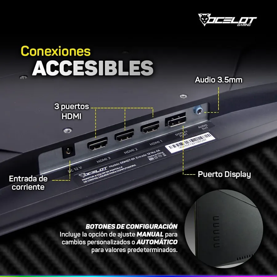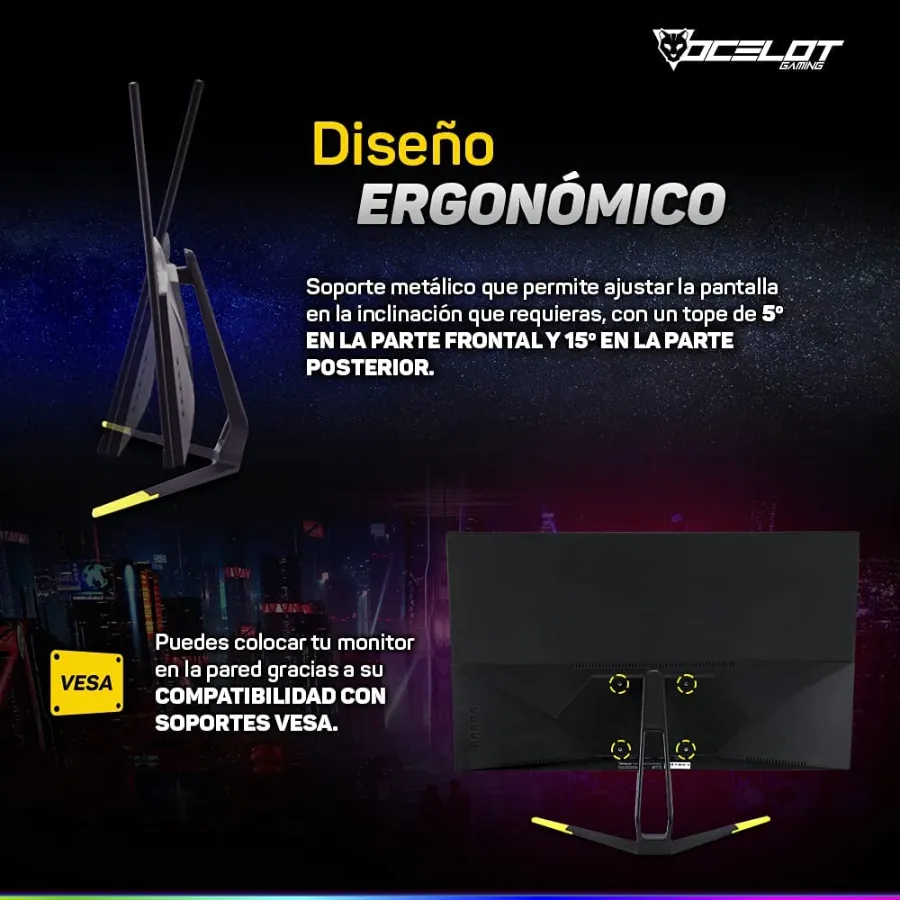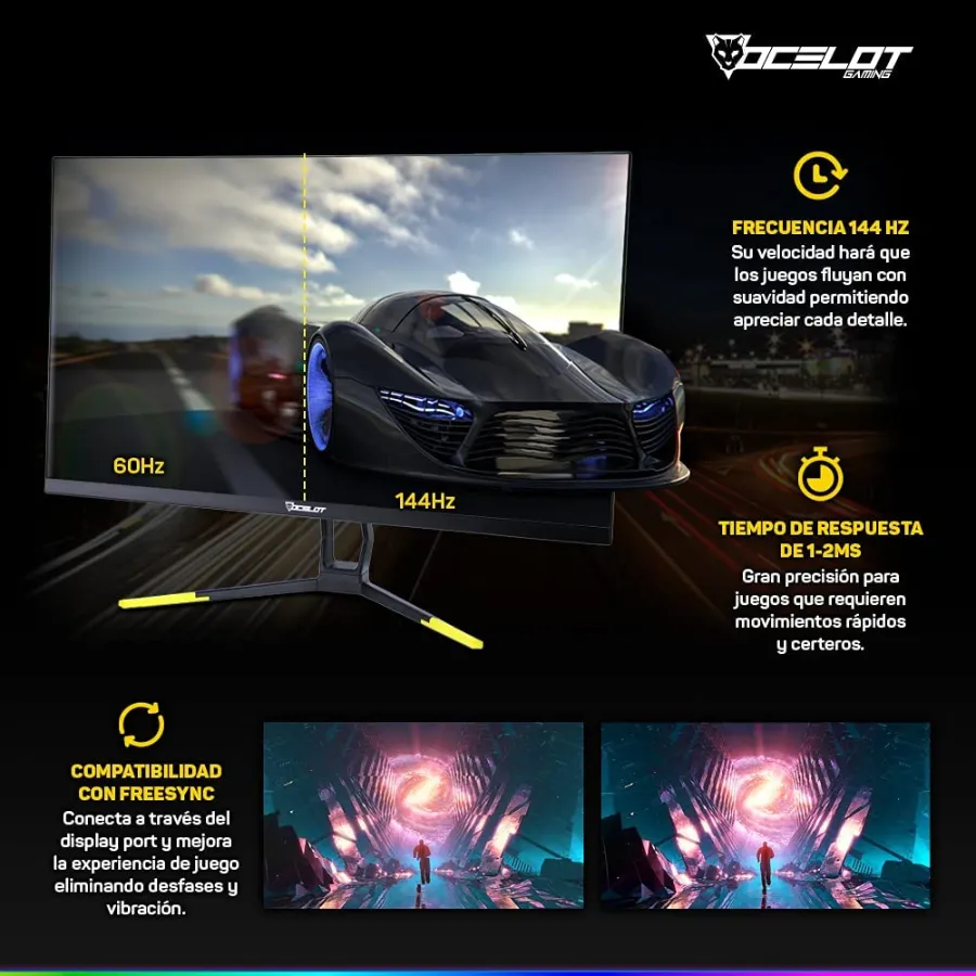 Monitor OCELOT Ogm27-01 LED / 27″ / FULL HD 1920 X 1080 / 144Hz / 2MS / Hdmi, Dp / Freesync / Negro