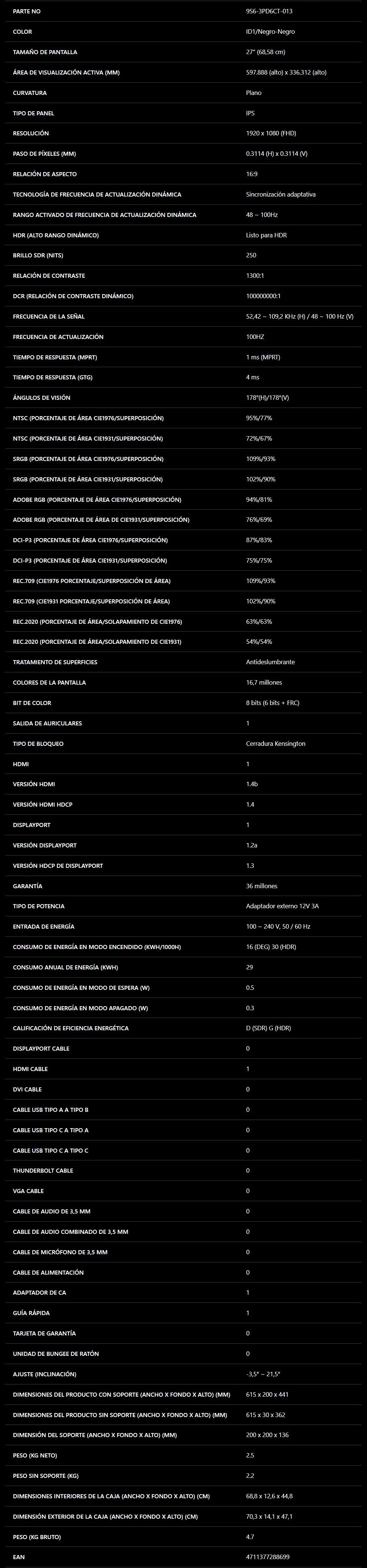 Nota: La precisión de la información, presentación, imágenes, título o especificaciones del producto pueden cambiar sin previo aviso.
