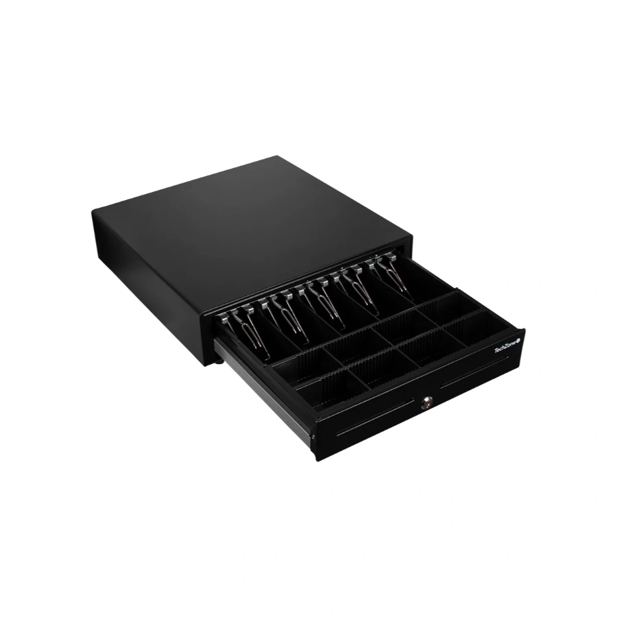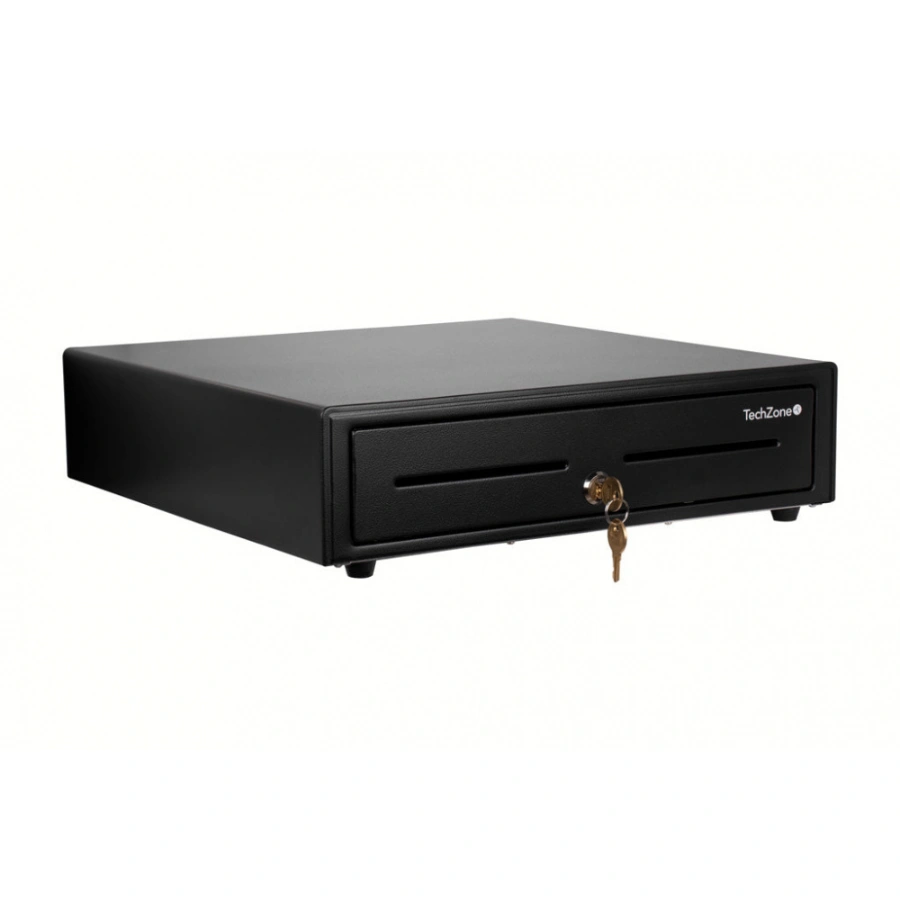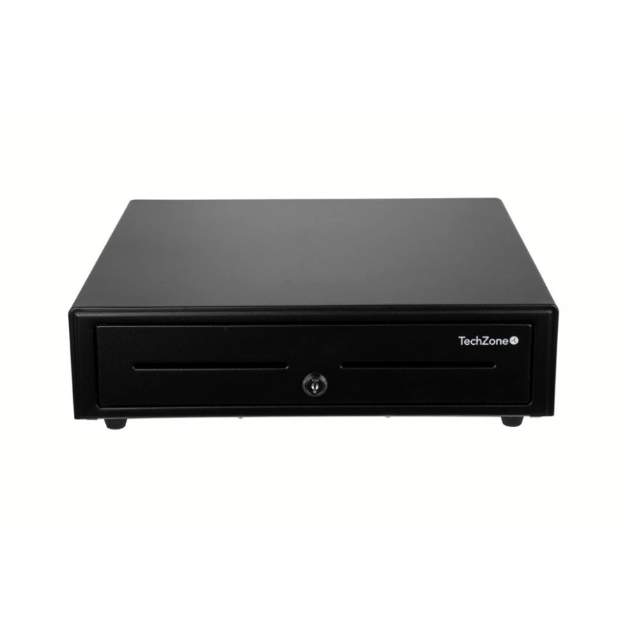 Cajón De Dinero TECHZONE / Con Llave, Pulso Y Manual / Compartimiento Para 5 Billetes Y 8 Monedas De Distinta Denominación / RJ11 / Color Negro