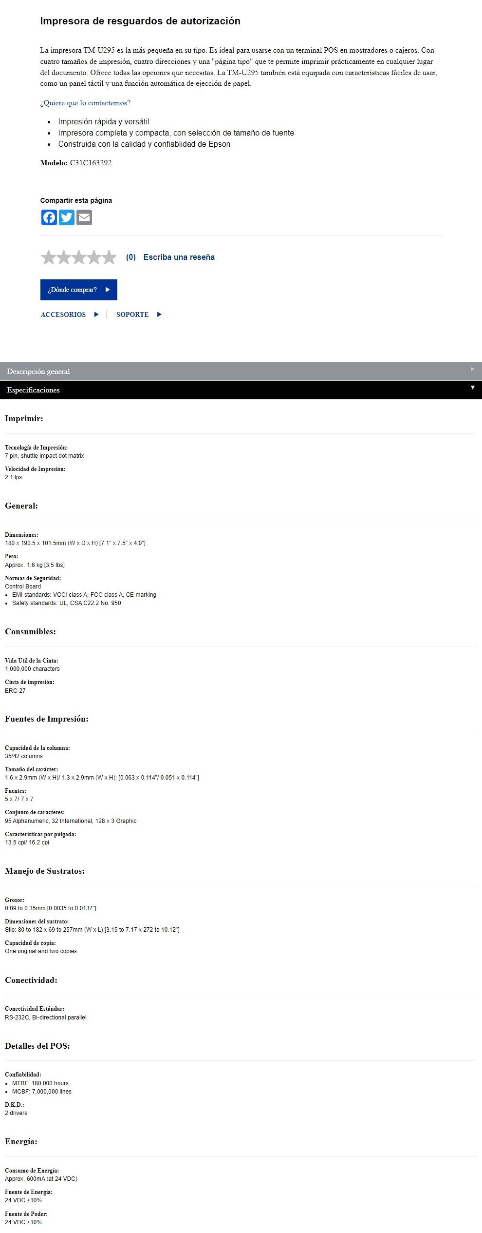 La impresora TM-U295 es la más pequeña en su tipo. Es ideal para usarse con un terminal POS en mostradores o cajeros. Con cuatro tamaños de impresión, cuatro direcciones y una “página tipo” que te permite imprimir prácticamente en cualquier lugar del documento.