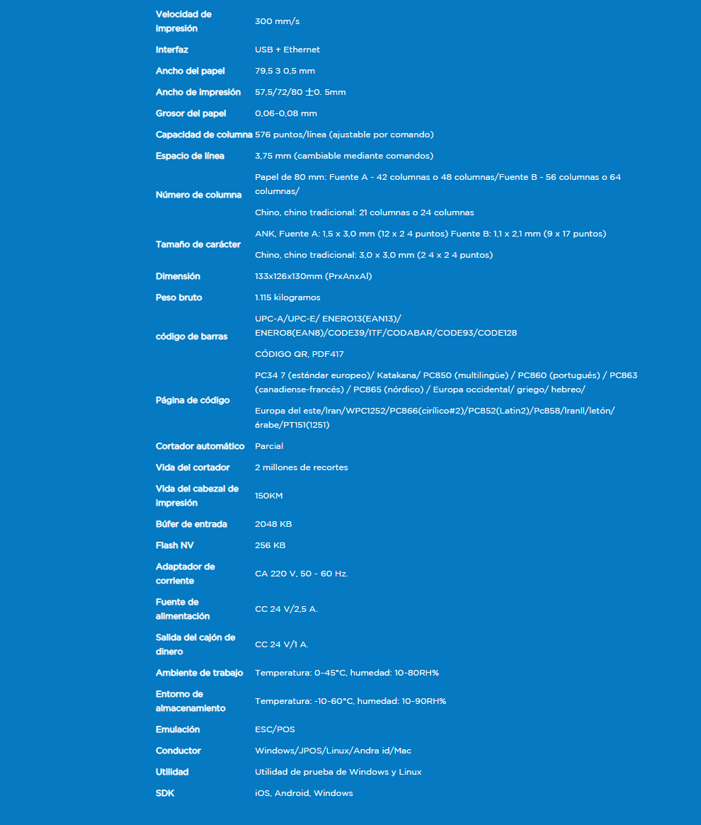 • Controlador de emulación ESC/ POS Windows/ J POS/Linux/ Android/ Mac