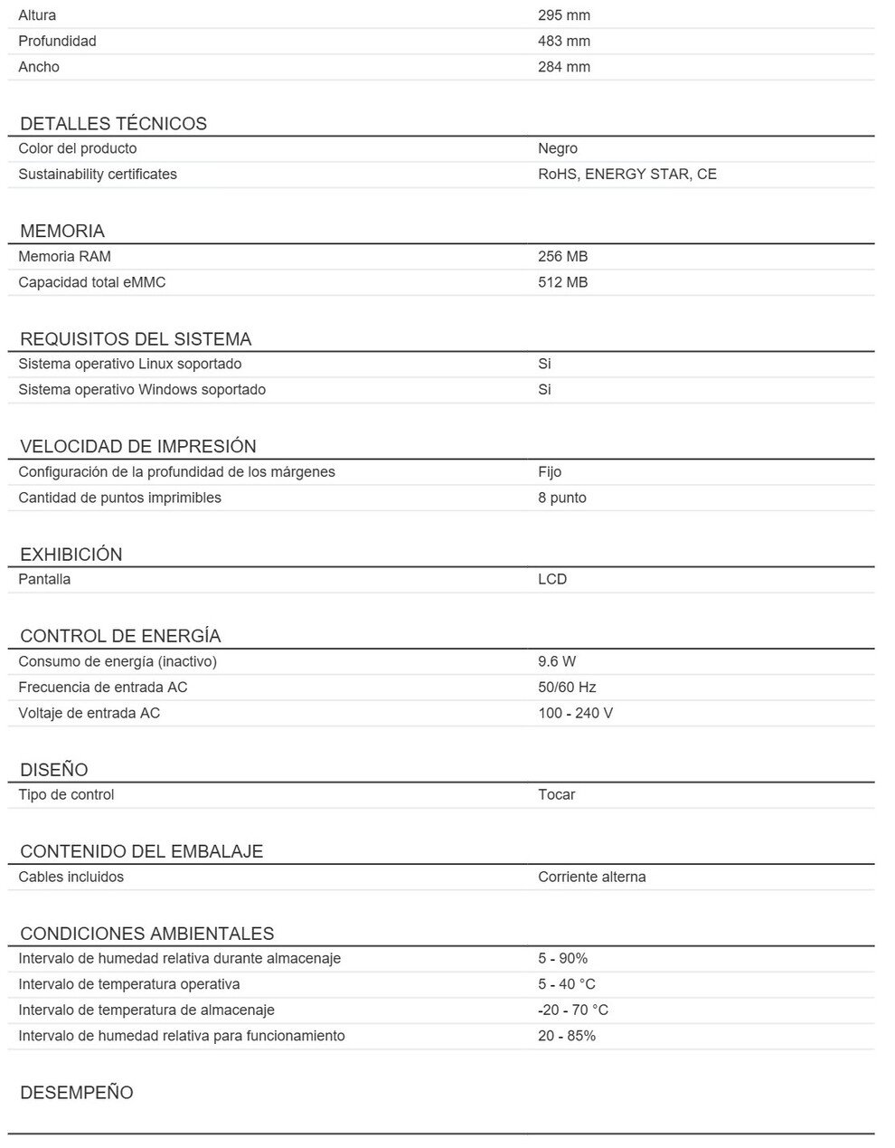 La impresora de etiquetas Honeywell PM45A10000000201 es una opción eficiente con un consumo de energía de 9.6 W en estado inactivo. Es compatible con sistemas operativos móviles como Android e iOS y cuenta con certificados de sostenibilidad RoHS, ENERGY STAR y CE.