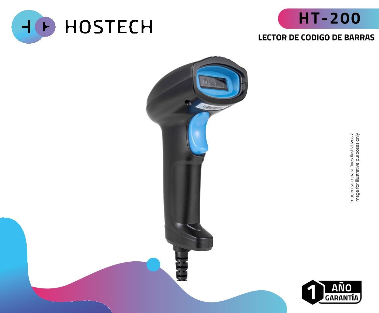 Lector de Código de Barras Láser Hostech HT-200 1D/2D – Incluye Cable USB, Alámbrico, Negro