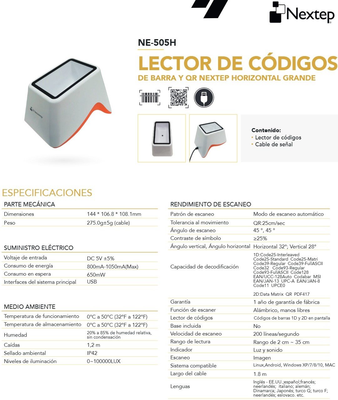 Lector De Código De Barras NEXTEP NE-505H