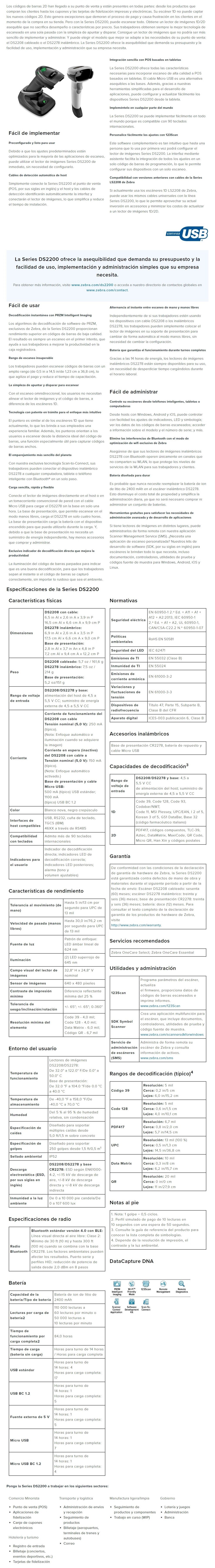 Sé el primero en valorar “Lector De Código De Barras Óptico ZEBRA DS2208 / Alámbrico / LED / USB/Micro-USB/ Bluetooth / Escaneo 1D/2D / Compacto / Color Negro”