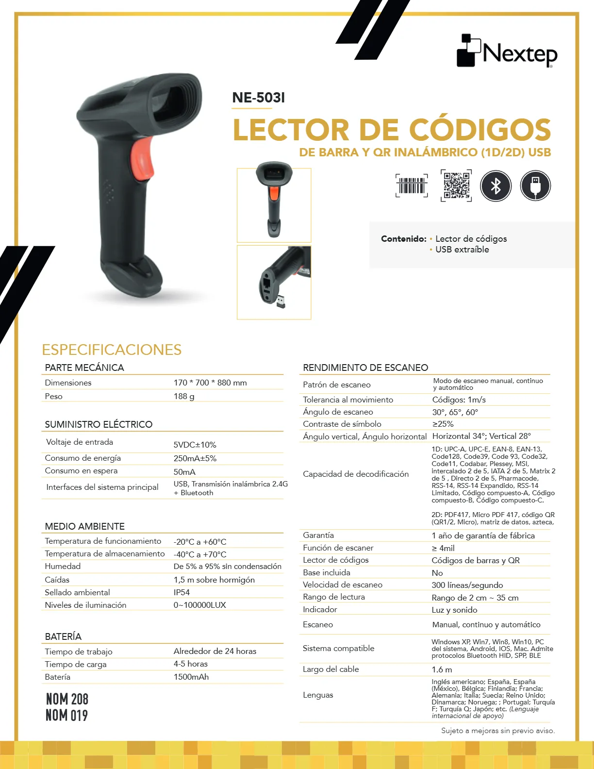 Lector De Código De Barras Y QR NEXTEP Ne-503i