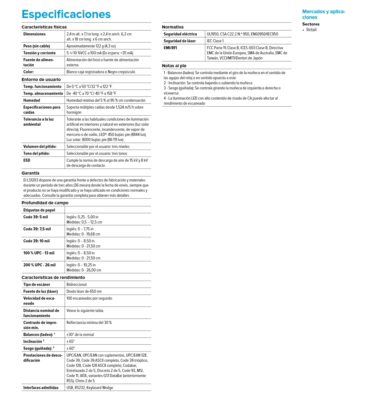 Lector De Código De Barras ZEBRA LS1203 / Alámbrico / 1D / USB, RS-232 / Base Incluida / Negro