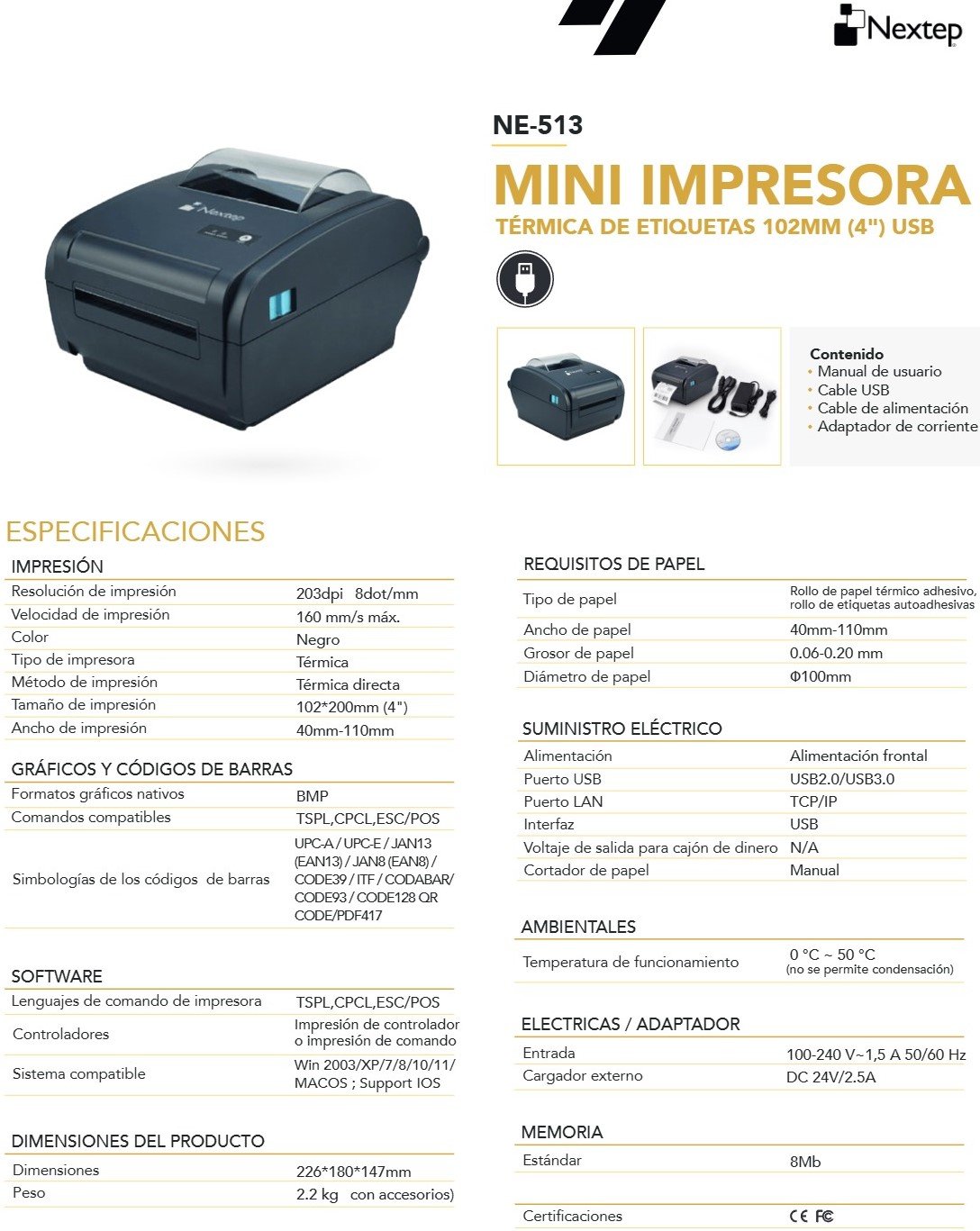 Mini Impresora Térmica NEXTEP NE-513