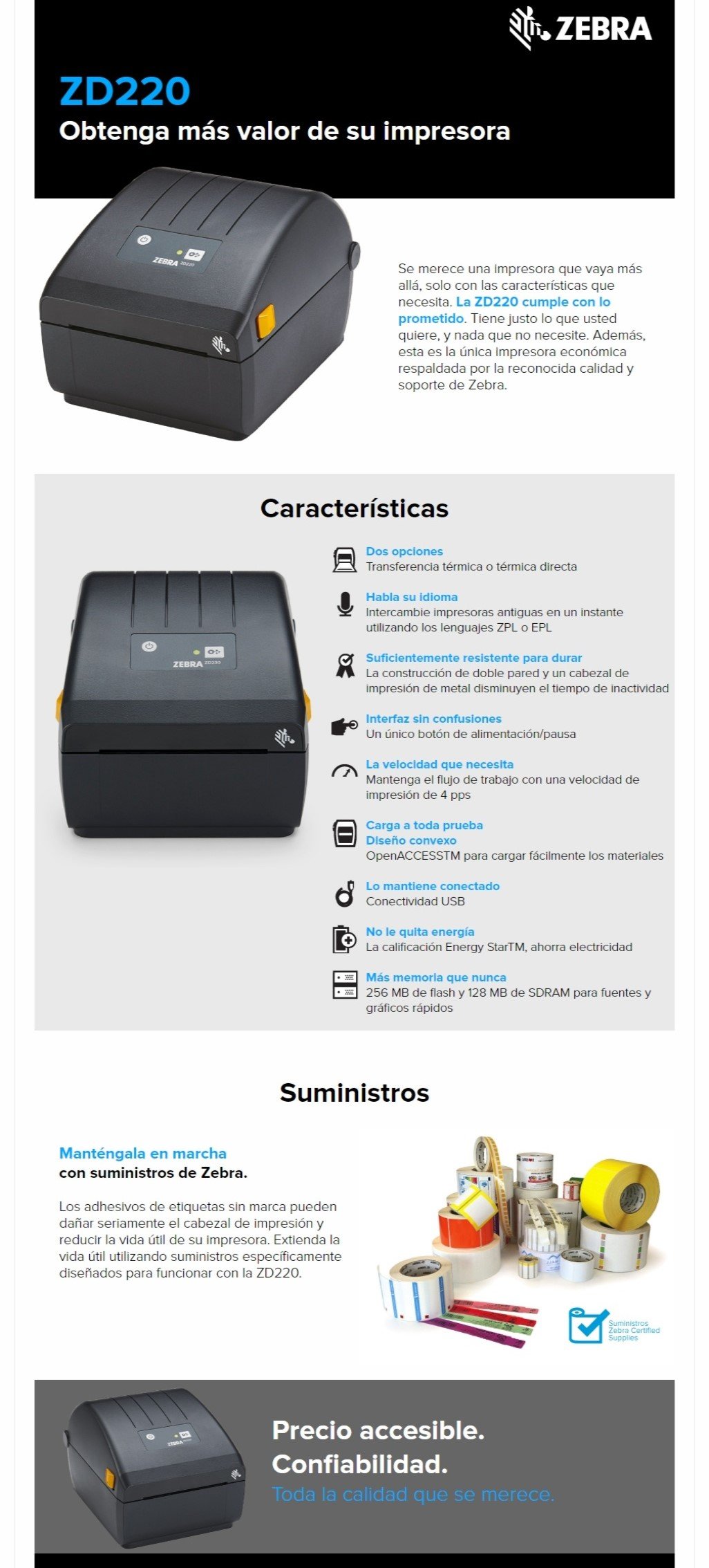 Se merece una impresora que vaya más allá, solo con las características que necesita. La ZD220 cumple con lo prometido. Tiene justo lo que usted quiere, y nada que no necesite.