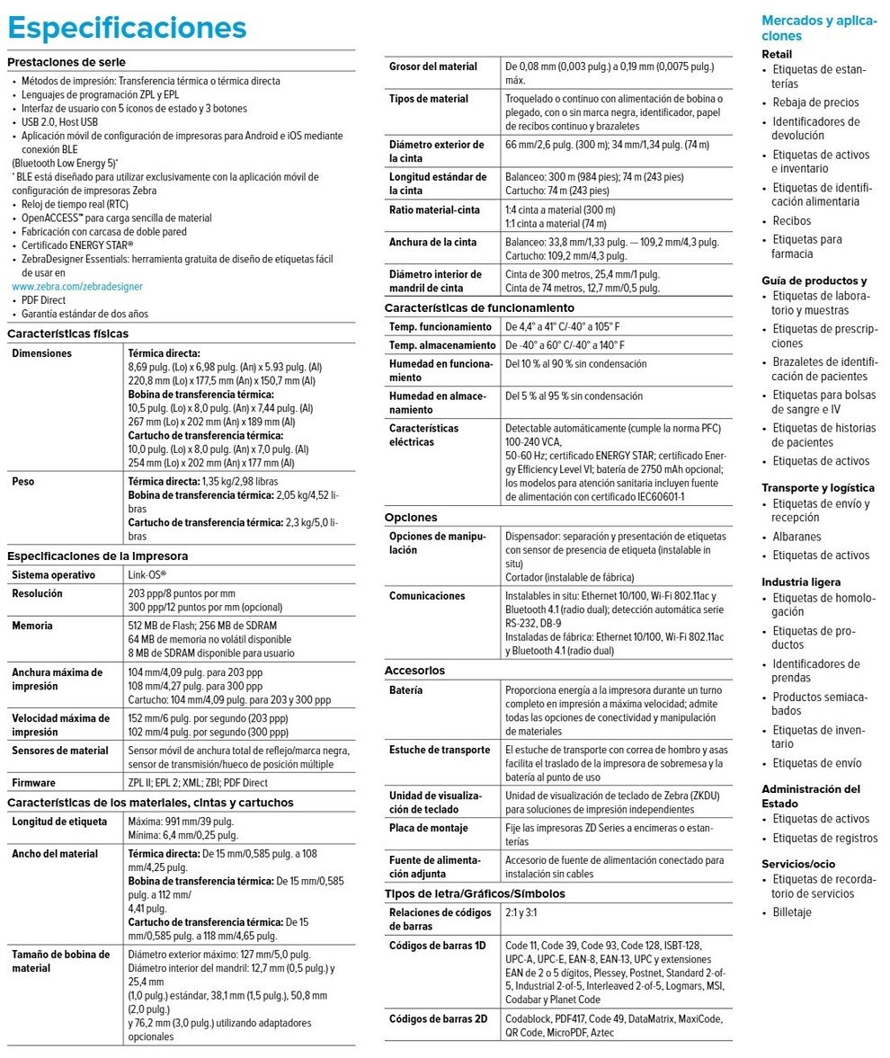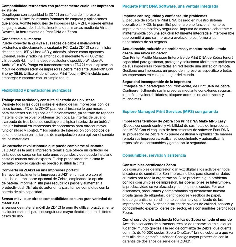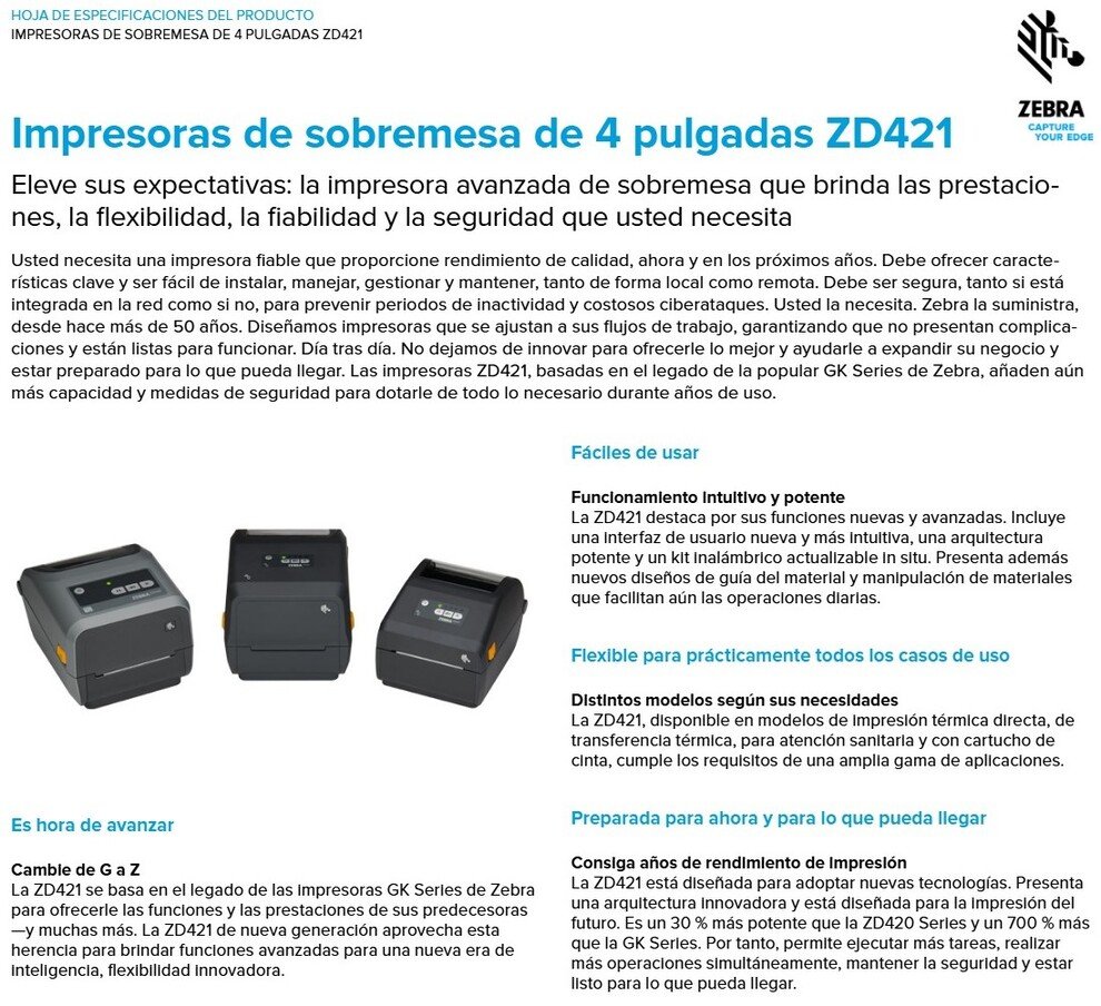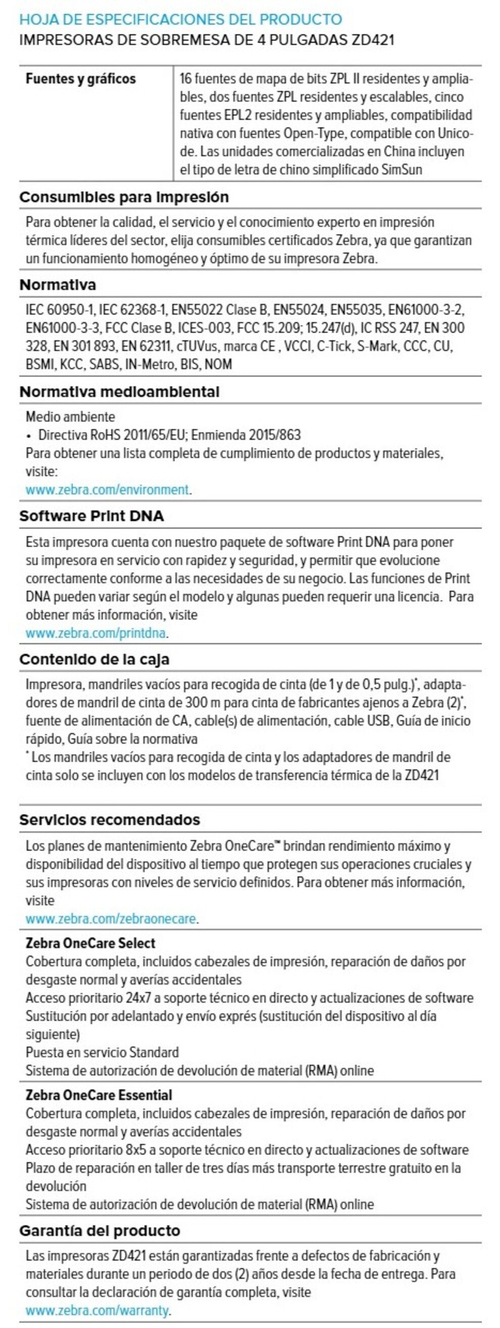 Mini Impresora Térmica ZEBRA ZD421 / Térmica / USB / USB Host / 4.09″ Ancho De Impresión / 203X203 DPI / Negro