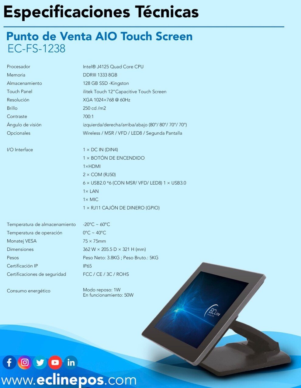 Terminal Punto De Venta ECLINE FS-1238-128-WIN