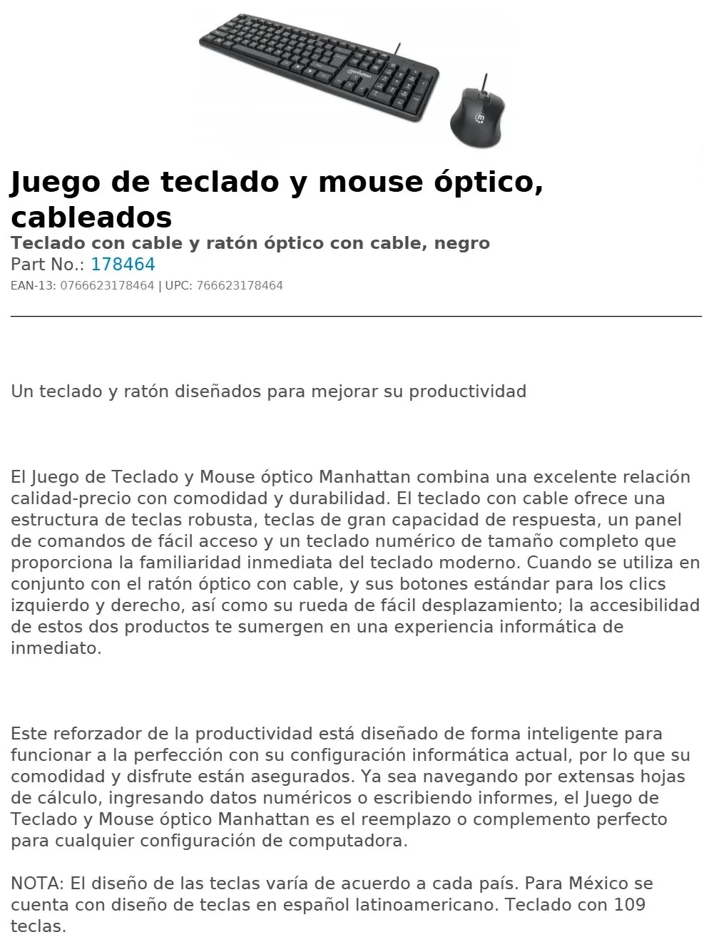Kit De Teclado Y Mouse MANHATTAN 178464