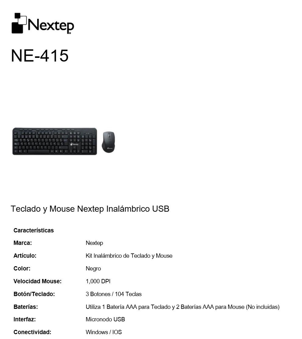Kit De Teclado Y Mouse NEXTEP NE-415 / Alámbrico / 1000 DPI / 3 Botones / Micronodo USB / 104 Teclas / Español / Negro