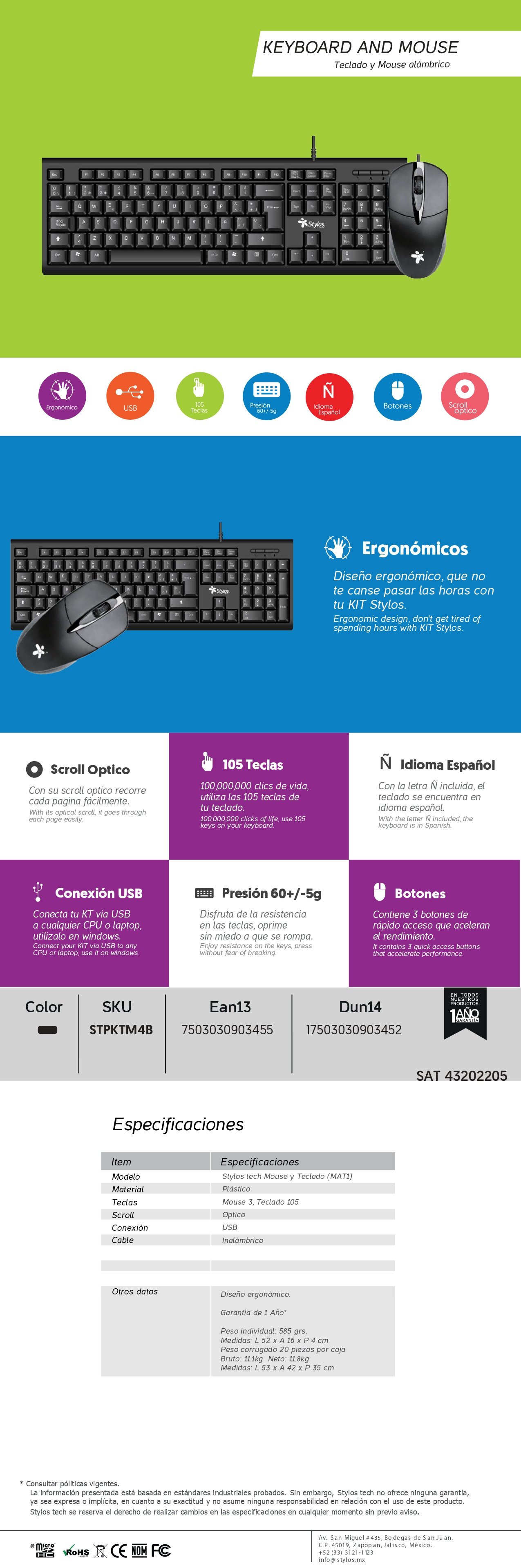 Sé el primero en valorar “Kit De Teclado Y Mouse STYLOS Stpktm4b / Alambrico / Usb / Ergonomico / 105 Teclas / español / Negro”