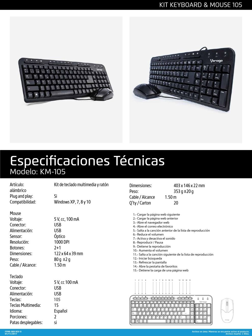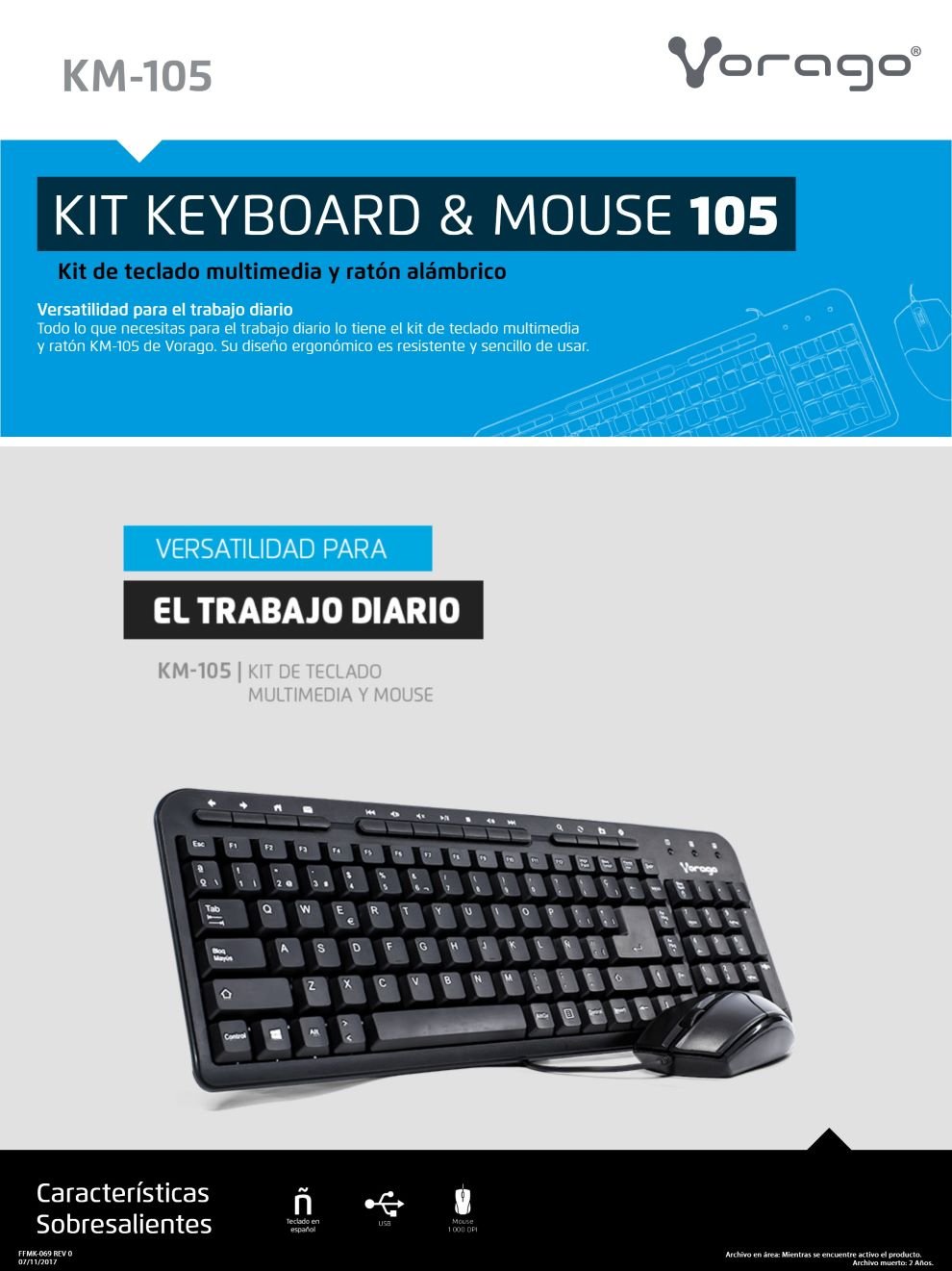 • Todo lo que necesitas para el trabajo diario lo tiene el kit de teclado multimedia y ratón KM-105 de Vorago.
