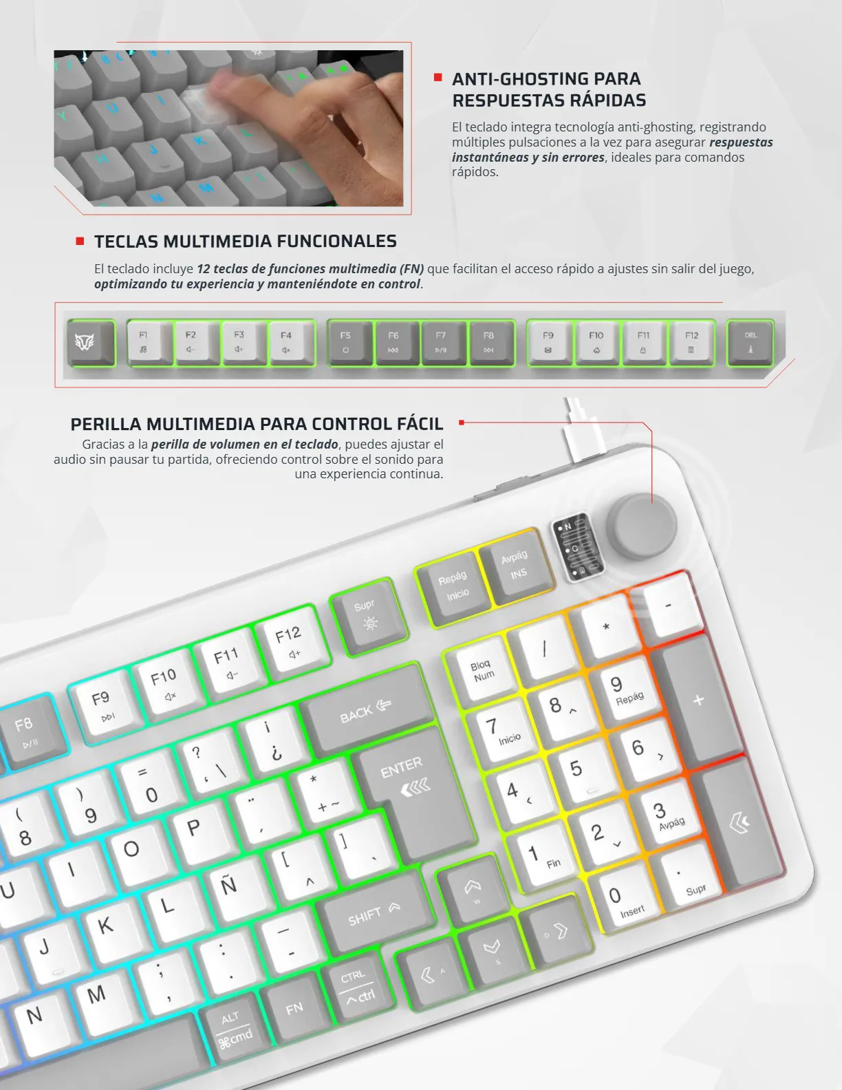 Kit Teclado y Mouse Gamer BALAM RUSH Squad Conquest KG515 – Alámbrico, USB, Membrana, Anti-ghosting, Hasta 7,200Dpi, Teclas Multimedia – Blanco