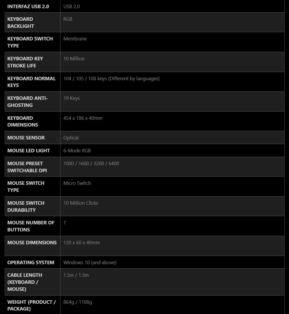• Interruptores duraderos – Años de juego garantizados con interruptores para teclado y ratón, clasificados para más de 10 millones de pulsaciones.