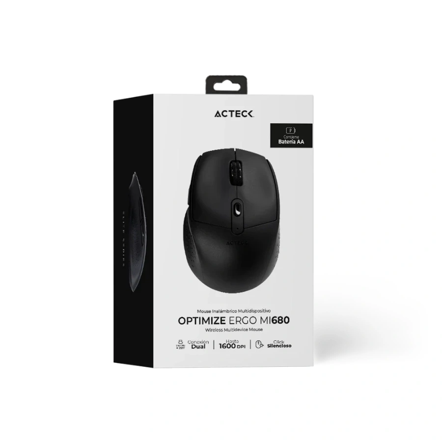Mouse Ergonómico ACTECK OPTIMIZE ERGO MI680 / Inalámbrico / Receptor USB, Bluetooth / 1600 DPI Ajustables / 6 Botones / Click Silencioso / Sensor Óptico / Negro