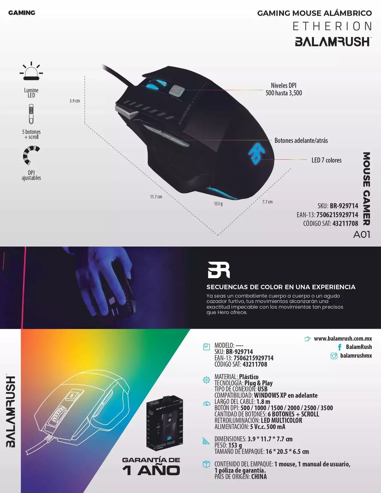 Sé el primero en valorar “Mouse GAMER Balam Rush Etherion / Alámbrico 3500 Dpi / 6 Botones / Usb 2.0 / Negro”