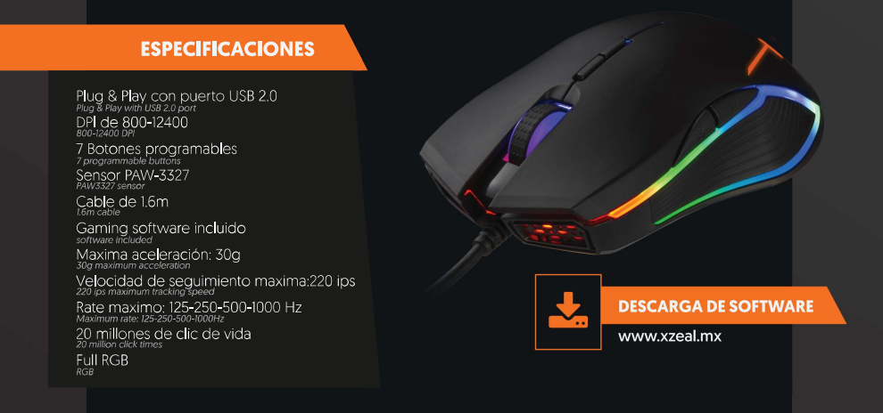 Sé el primero en valorar “Mouse Gamer XZEAL XZ920 RGB / 12400 Dpi / 7 Botones / USB 2.0 / Cable 1.6Metros / Negro / XZMX920B”