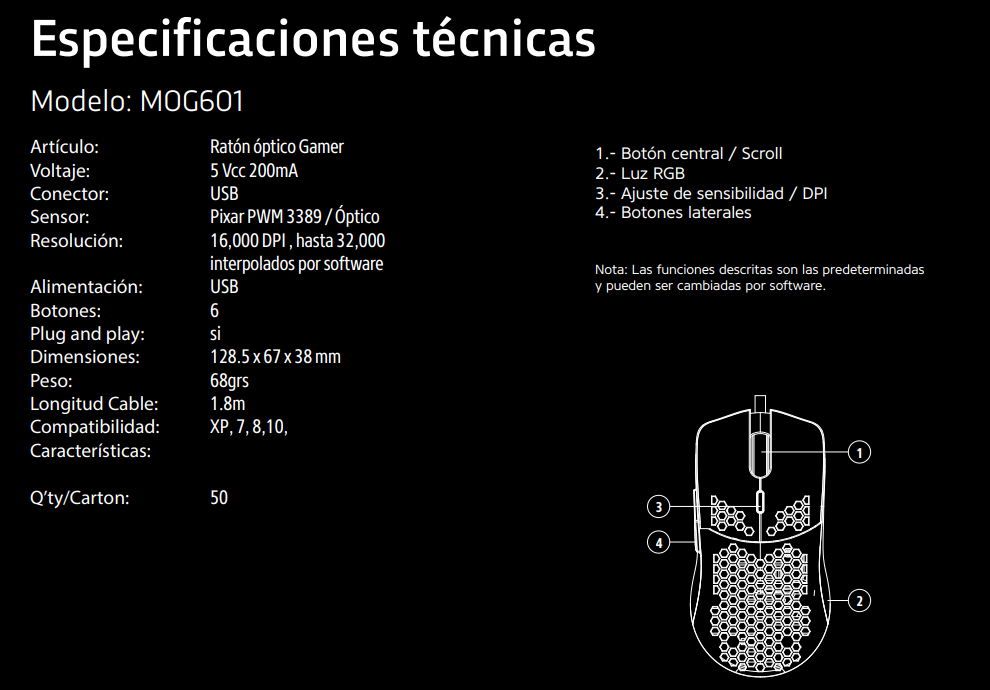 Sé el primero en valorar “Mouse Gaming Game Factor Mog-601 / Alámbrico / RGB / 16000 Dpi / Sensor Pmw3389 / 7 Botones / Gomas De Silicon Incluidas / Blanco”