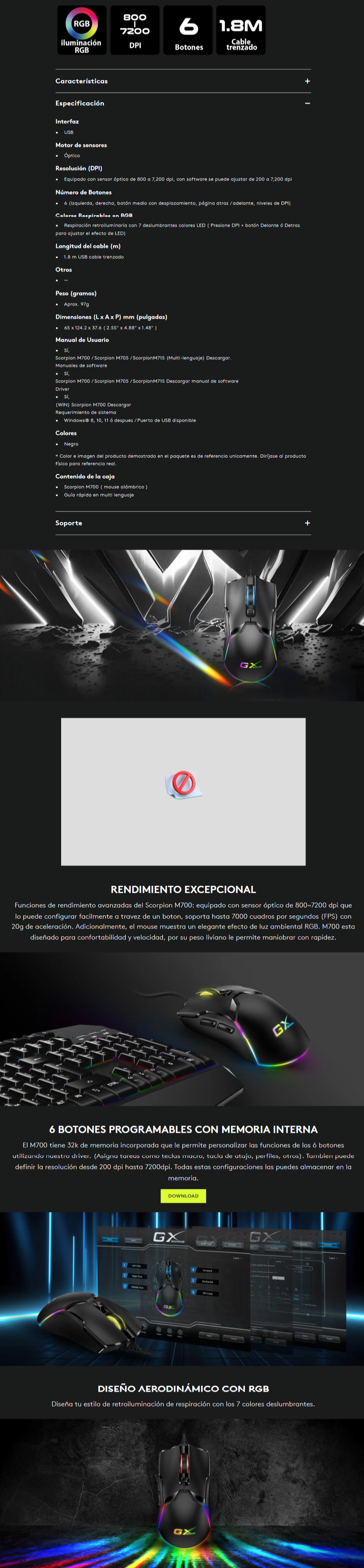 Sé el primero en valorar “Mouse Gaming GENIUS GX M700 Scorpion – 7200 Dpi, 6 Botones, Rgb, USB, Software Para RGB – Negro”