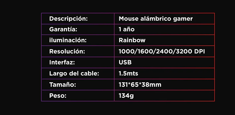 • Resolución de movimiento : 3200 DPI