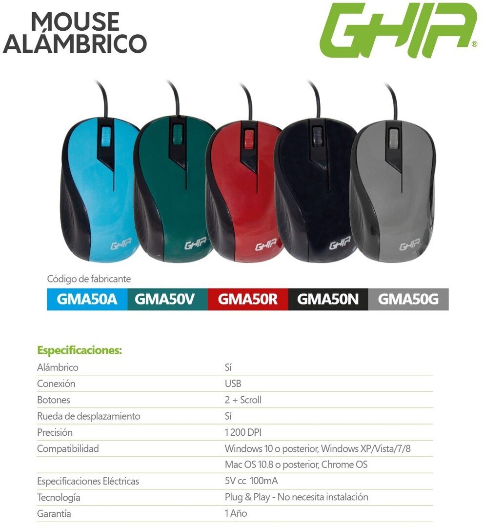 Sé el primero en valorar “Mouse GHIA GMA50N / Alámbrico / Ergonómico / USB / 1200 DPI / 2 Botones / Sensor Óptico / Cable 1.2 M / Negro”