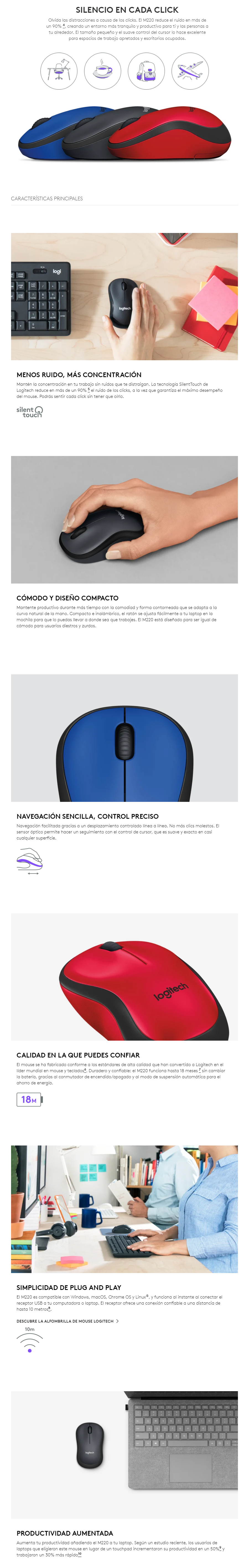 Olvida las distracciones a causa de los clicks. El M220 reduce el ruido en más de un 90%, mantén la concentración en tu trabajo sin ruidos que te distraigan.