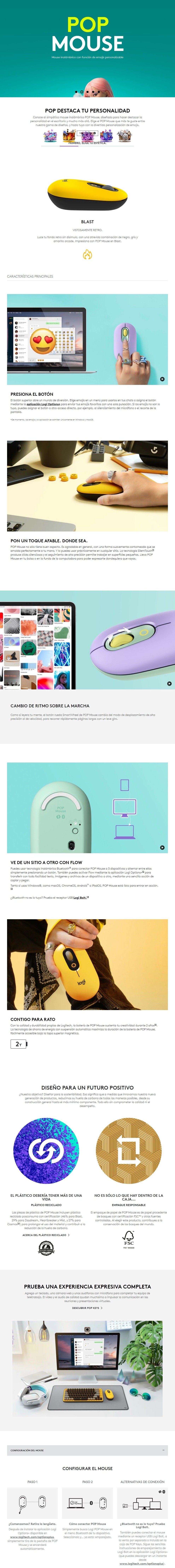 Mouse LOGITECH POP / Inalámbrico / Ergonómico / Bluetooth / 1000 DPI / 4 Botones / Sensor Óptico / Botón Para Emojis Personalizable / 1 Pila AA Incluida / Color Blast