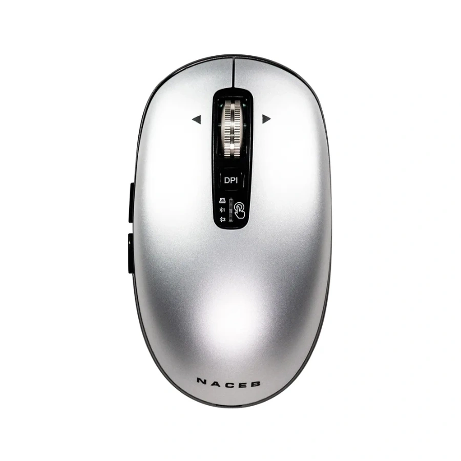 Mouse Naceb LS1 – Inalámbrico, Nano USB, Óptico, 3.200 DPI, Bluetooth, Pilas AA, Color Gris